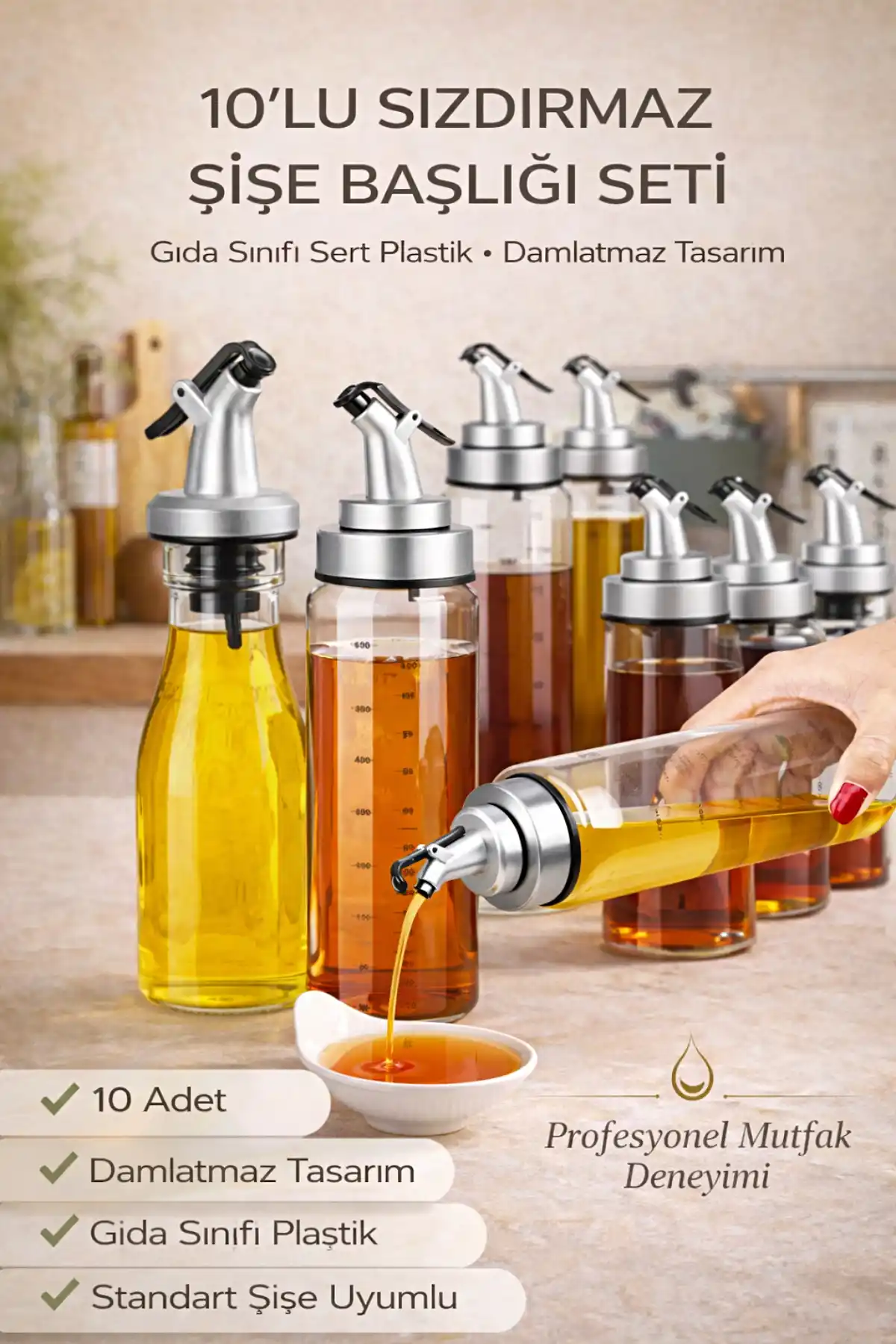 • 10’lu Sızdırmaz Damlatmaz Yağdanlık Şişe Başlığı Seti Gıda Uyumlu ABS Yağlık Sirkelik Sosluk Ucu Standart Şişe Tapası Kontrollü Döküm Aparatı