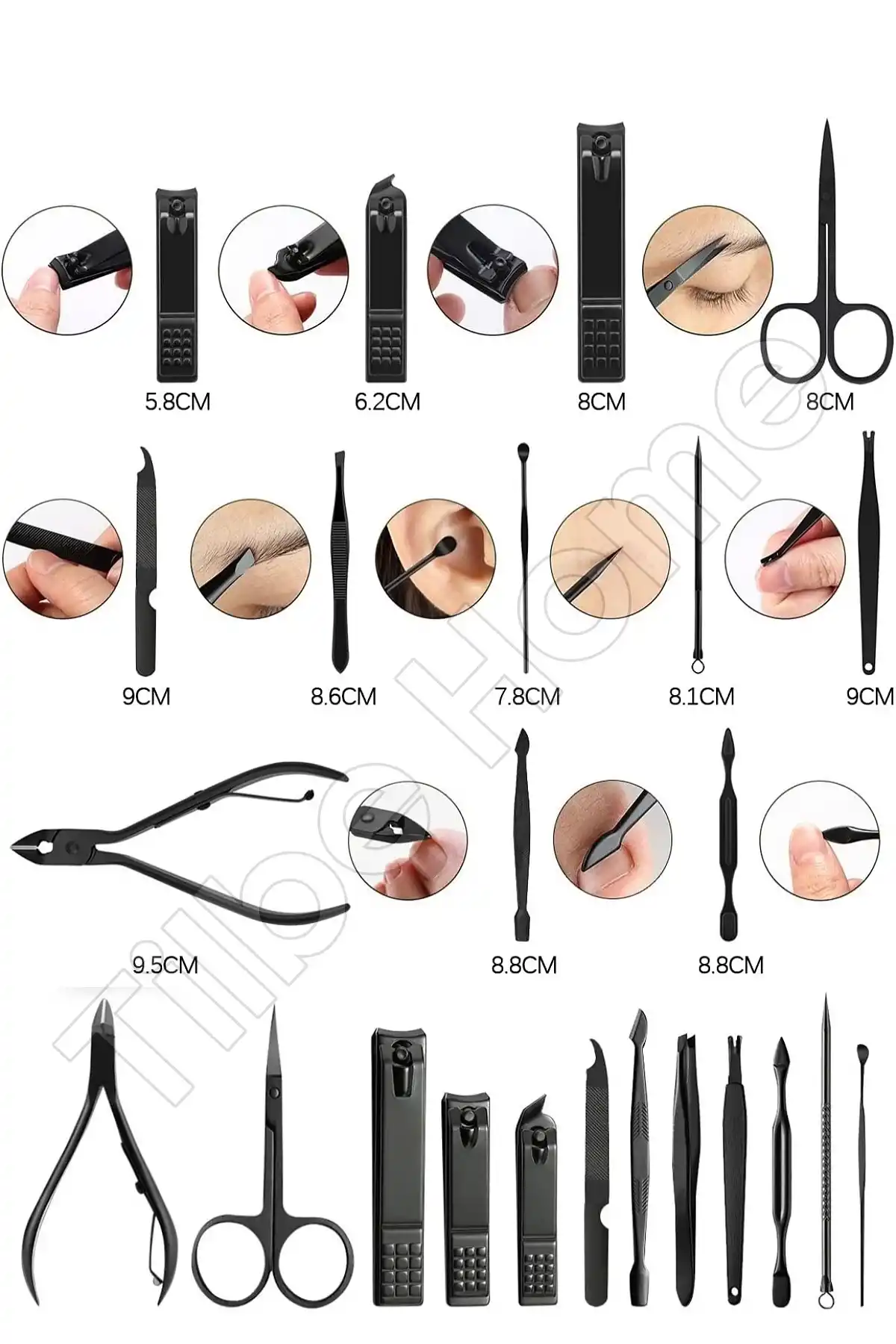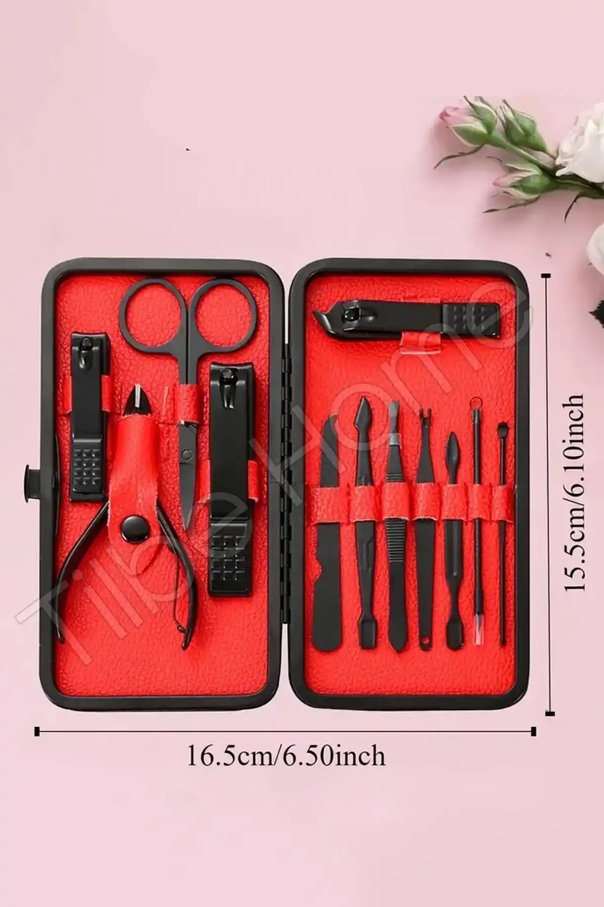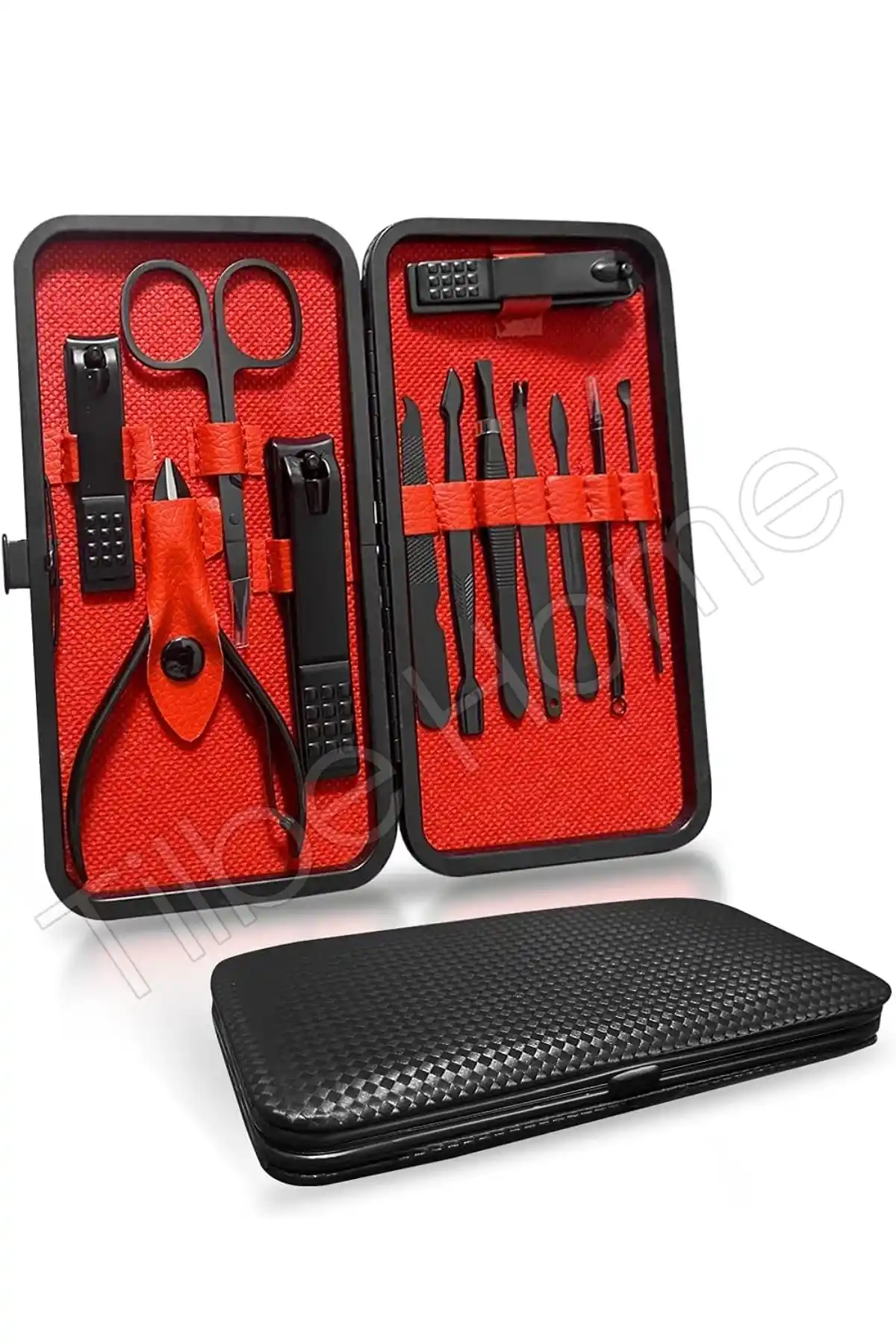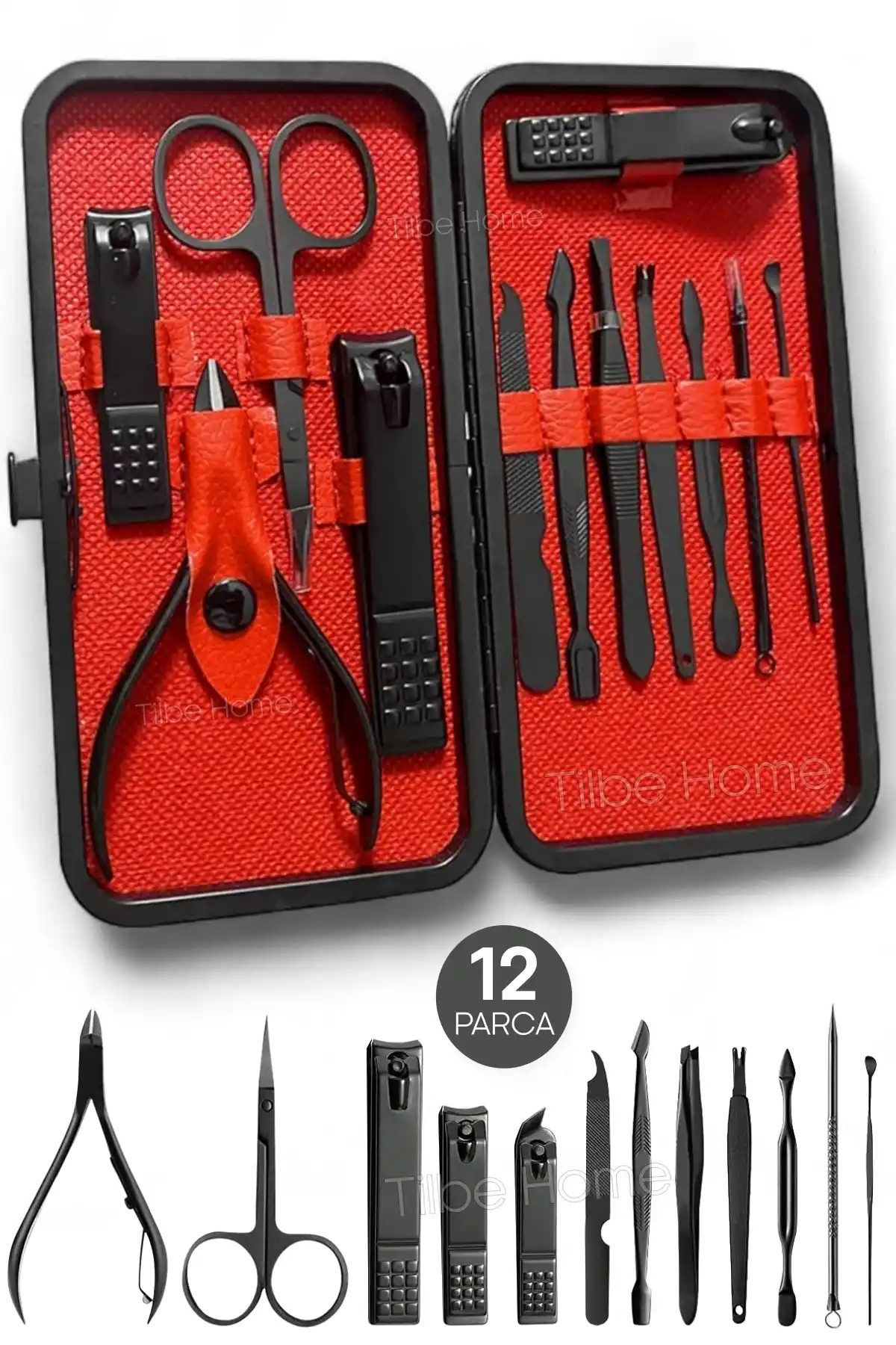 • Tilbe Home 12 Parça Çantalı Manikür Pedikür Seti El Ayak Tırnak Bakım Seti Cımbız Makas Siyah Nokta Temizleme Seti