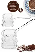 Madamev 2 Adet Üzüm Tanesi Cam Cezve Isıya Dayanıklı Borosilikat Boncuk Still Kulplu Cam Cezve