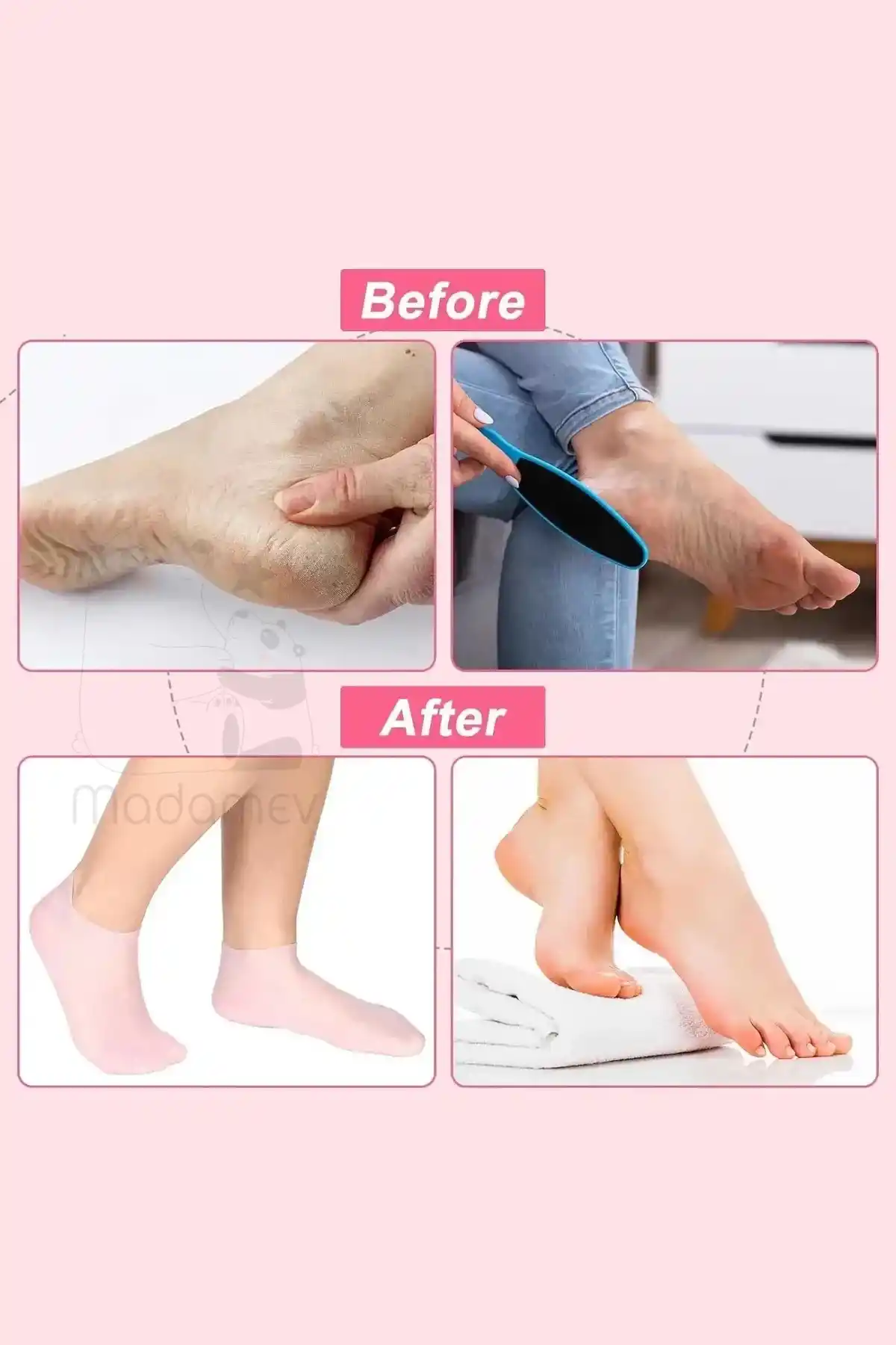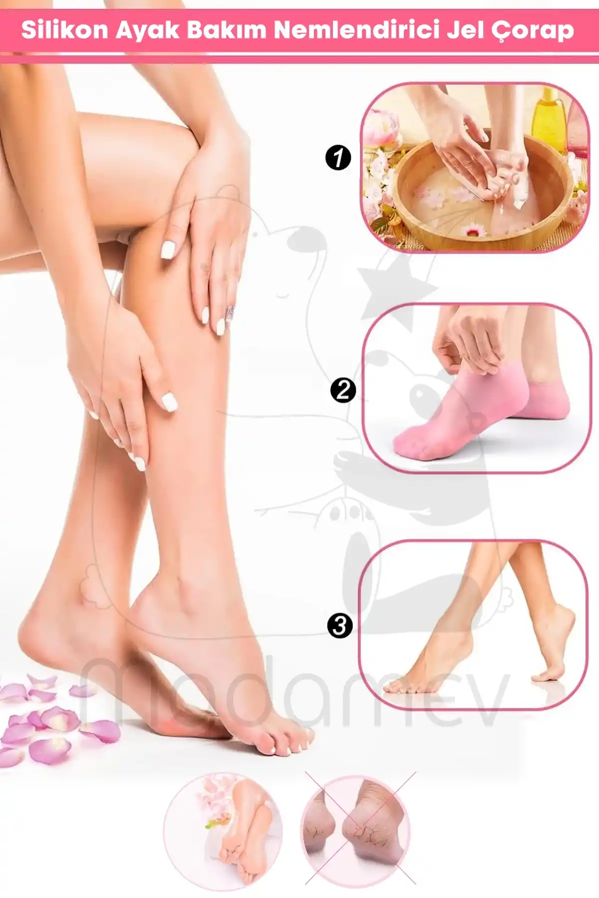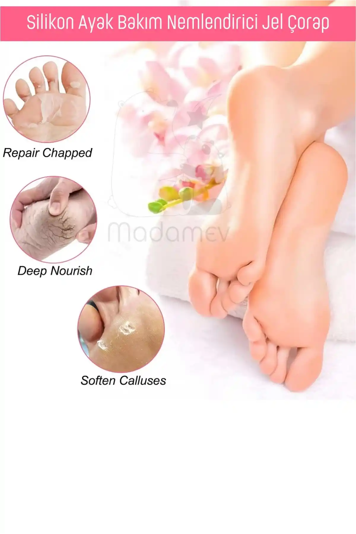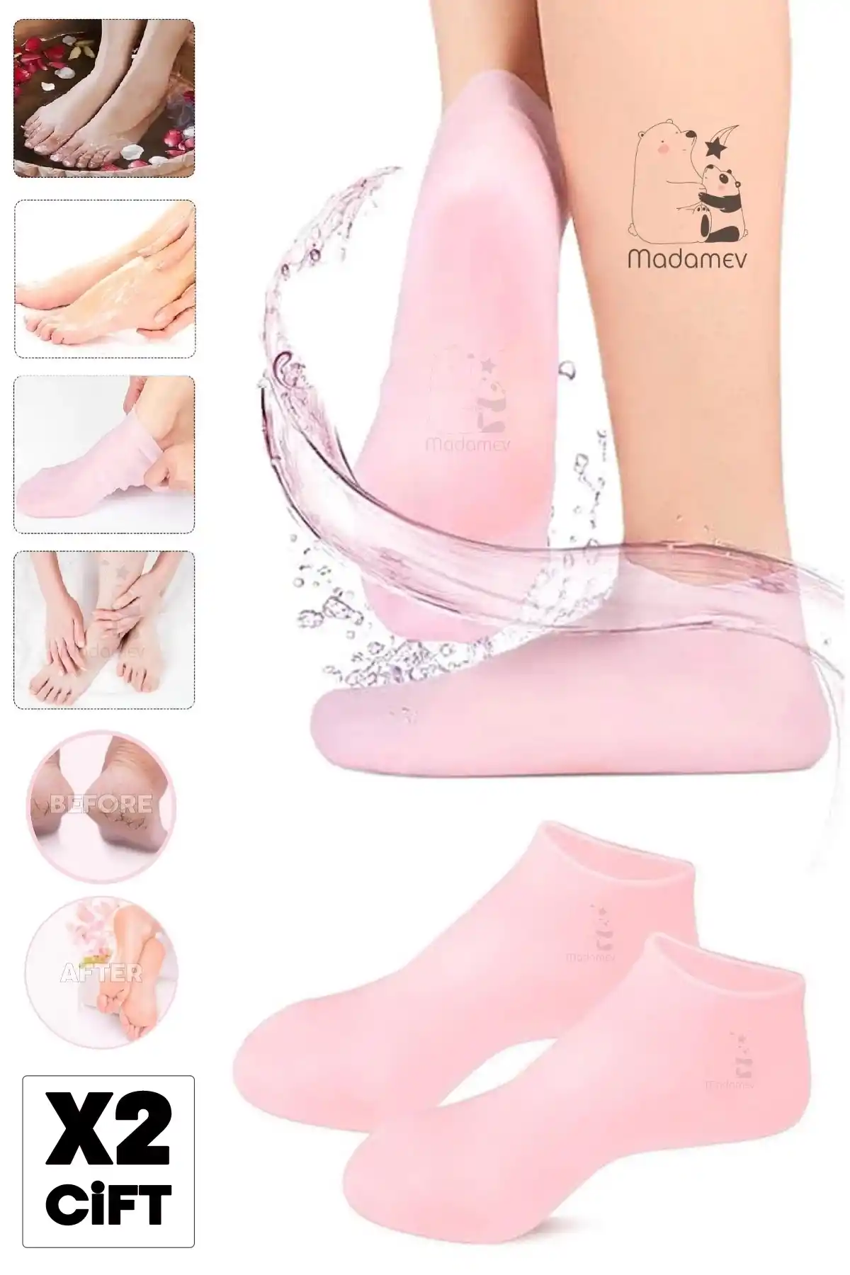 Madamev Doğrulanmış Marka 2 Çift Silikon Ayak Bakım Çorabı Nemlendirici Jel Çorap Yumuşak Kadın Ayak Çatlak Önleyici Çorap