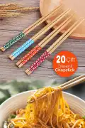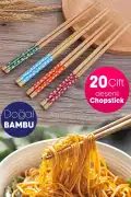 • Tilbe Home 20 Çift Bambu Chopstick Desenli Yıkanabilir Kore Çin Yemek Çubuğu El Yapımı Doğal Ahşap Sushi Çubuk