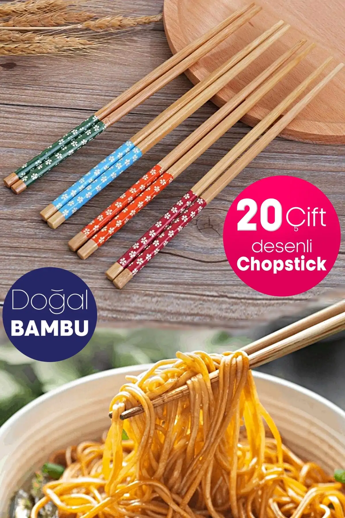 • Temizlemesi kolay, tekrar kullanılabilir yemek çubukları, yıllarca kullanabilirsiniz