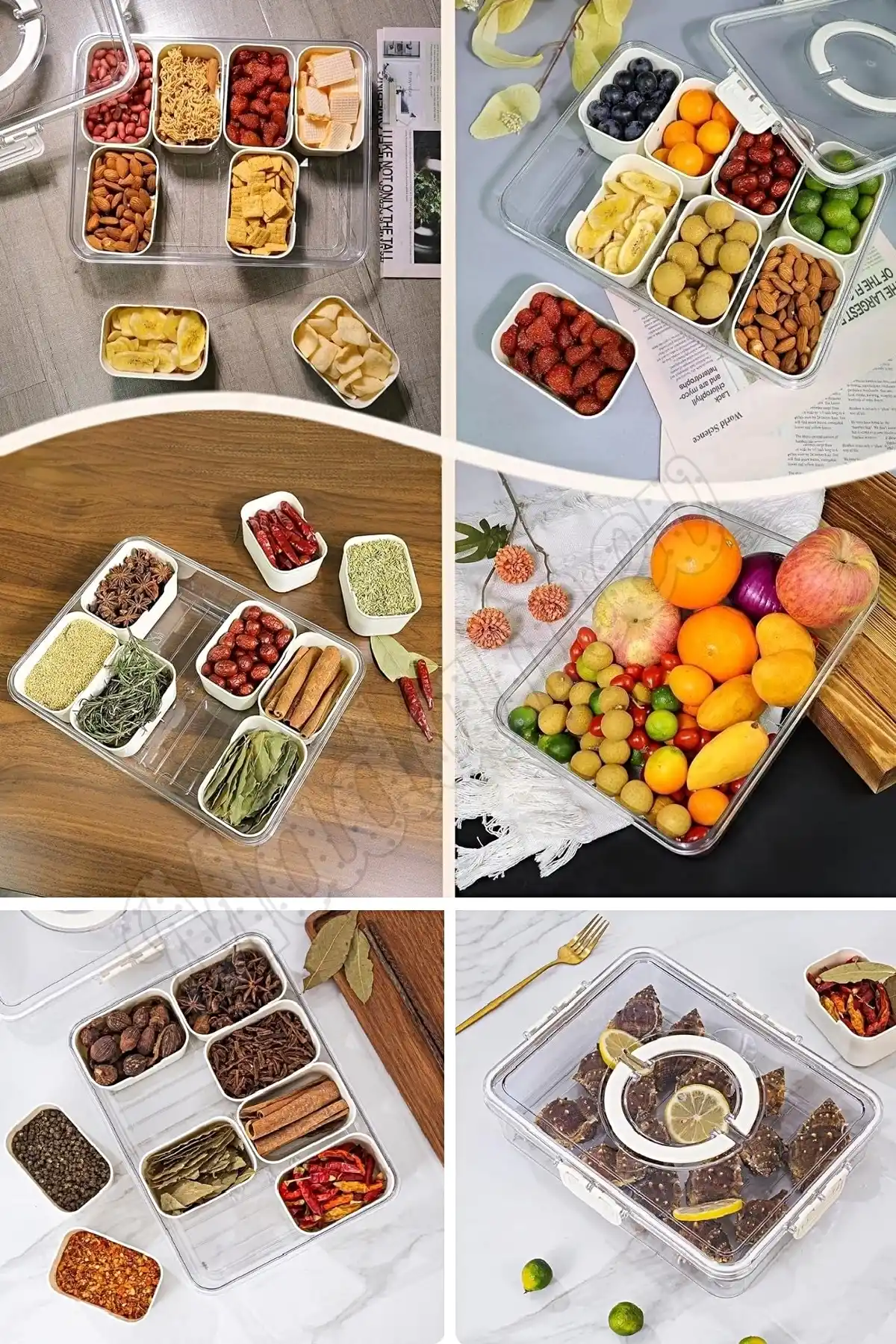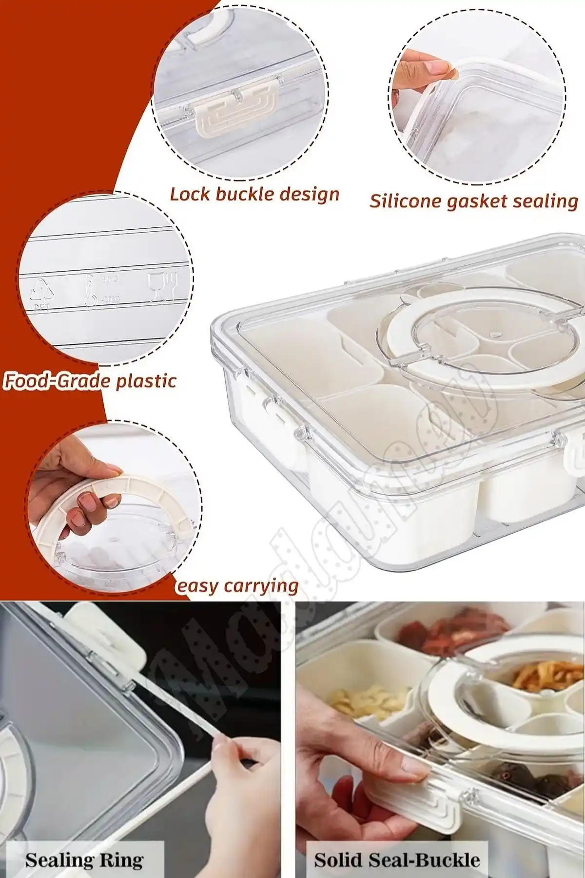 • Çok Bölmeli Çok Amaçlı: Farklı yiyecekleri ayrı bölmelerde saklama imkanı sunar, karışmayı ve kötü kokuları önler.