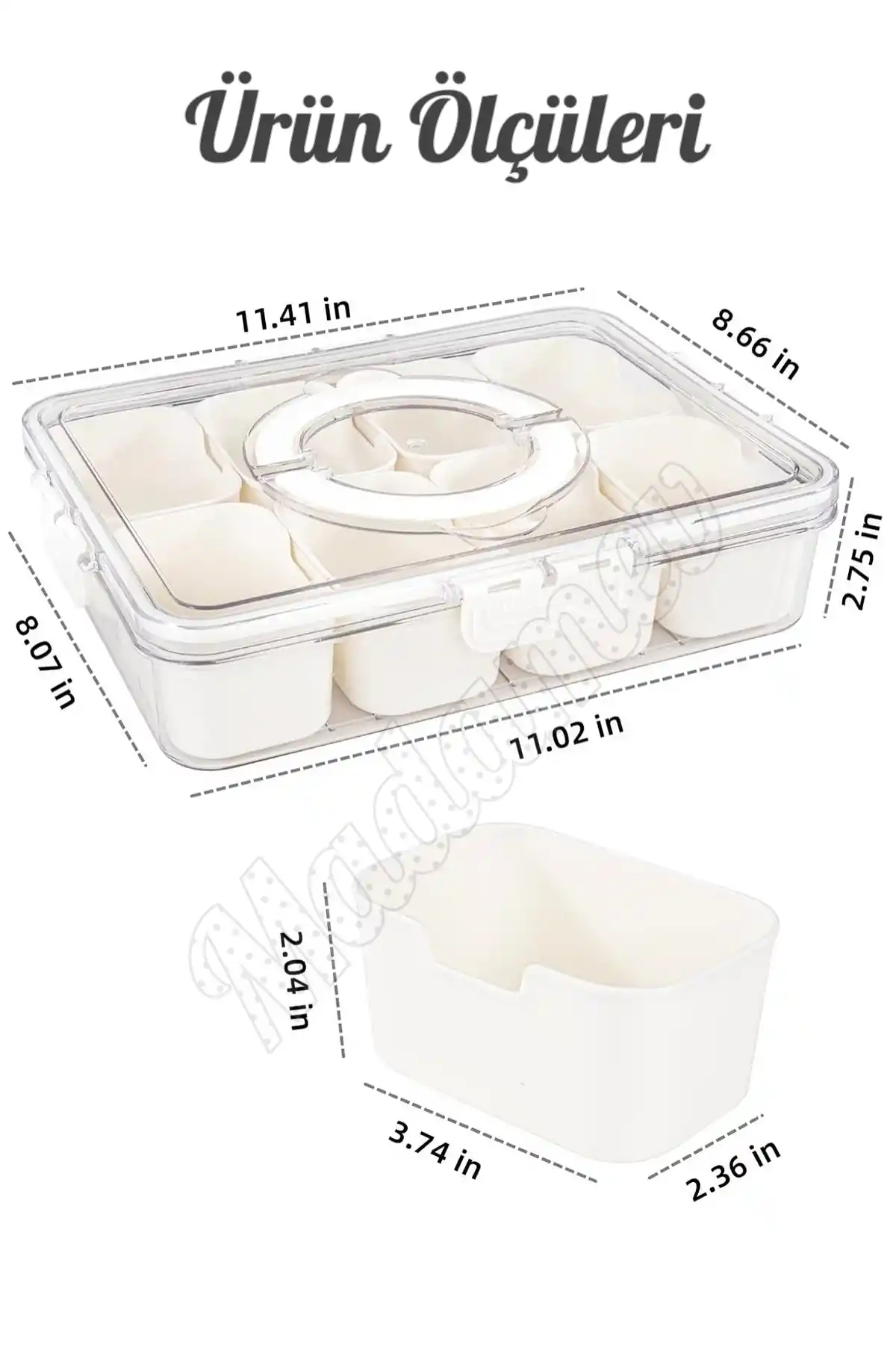 Tilbe Home Doğrulanmış Marka 2'li 8 Bölmeli Kilit Kapaklı Taşınabilir Saklama Kabı Kahvaltılık Organizer Piknik Seti Gıda Kutusu