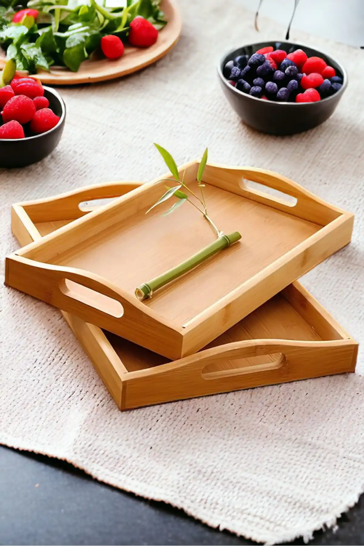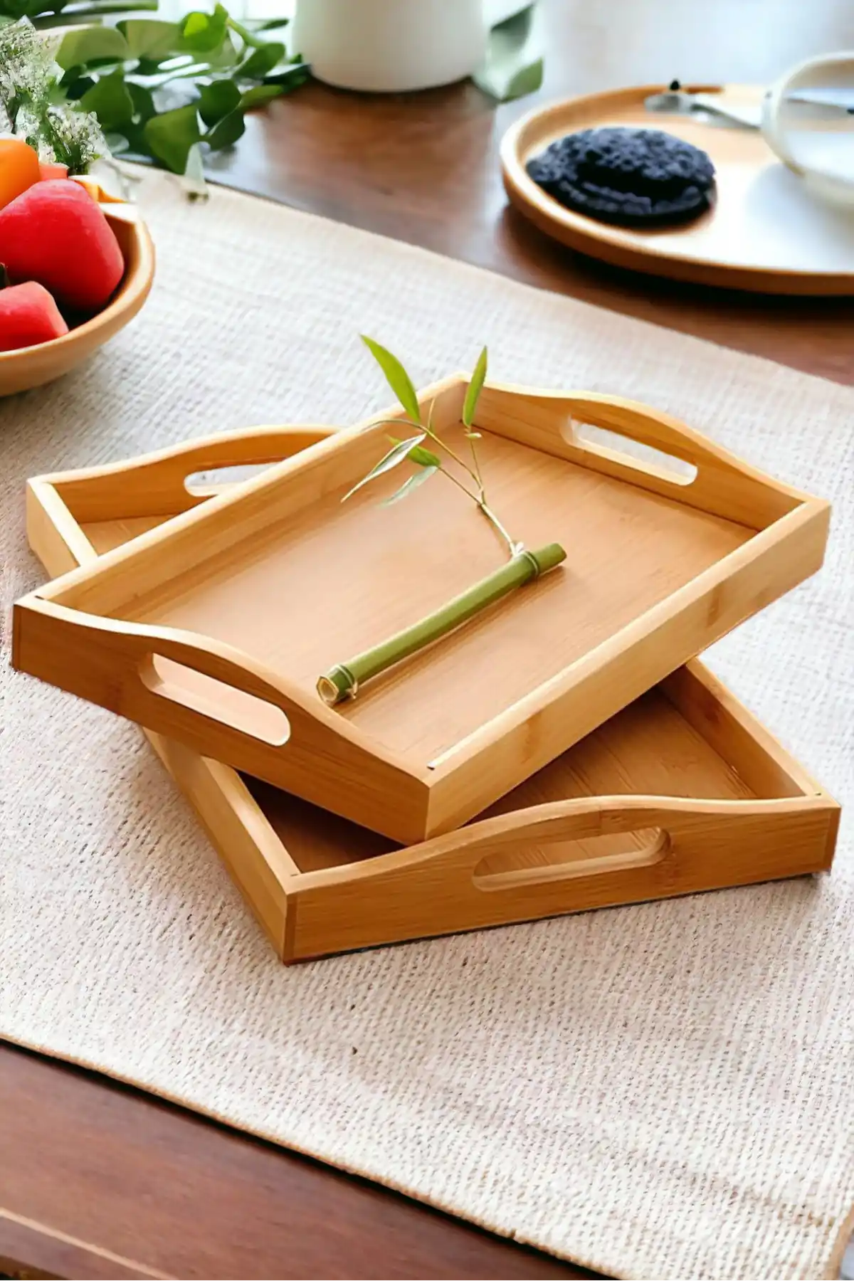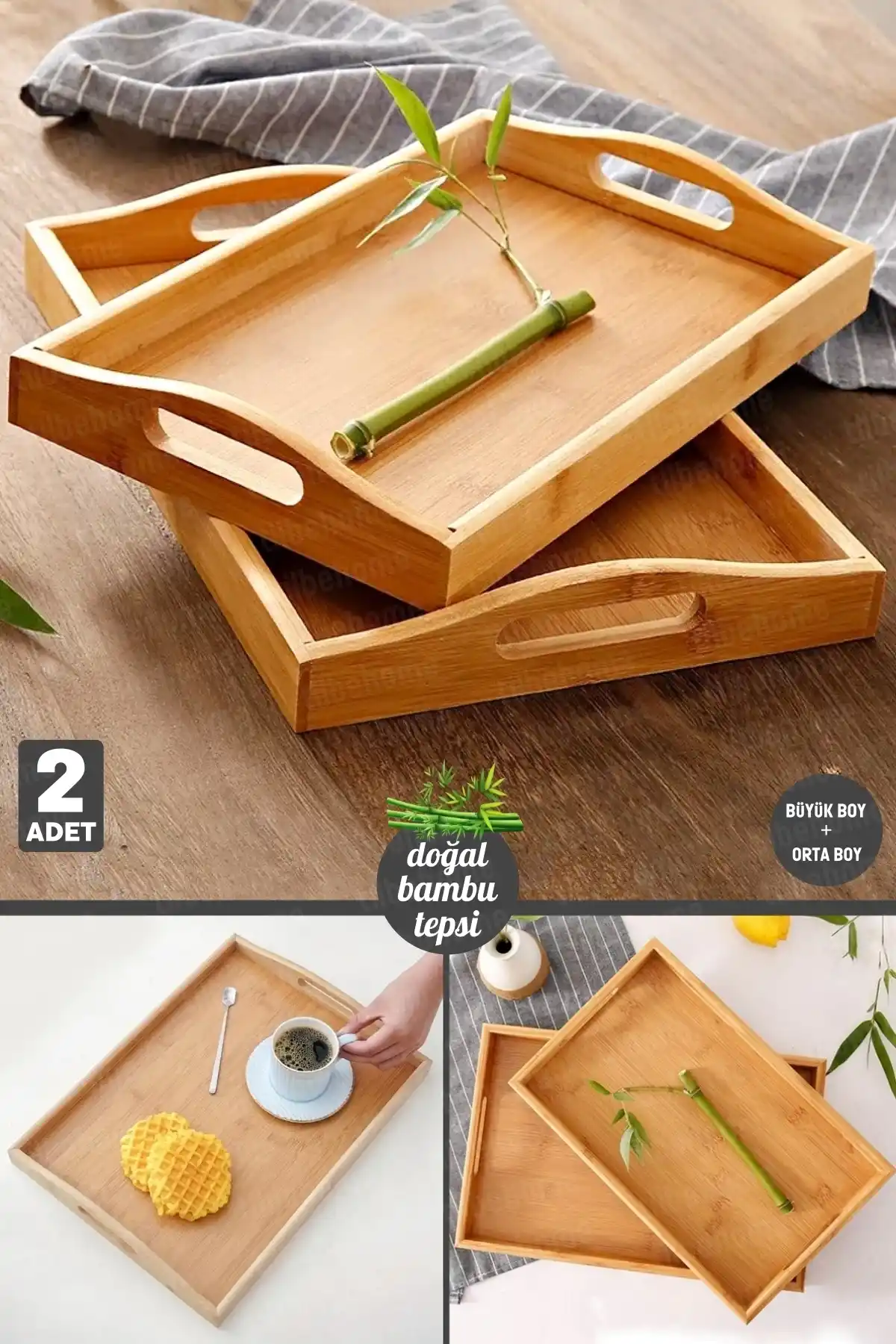 • Paket İçeriği: 2 Adet Lüx Kulplu Dikdörtgen Bambu Tepsi Bulunmaktadır. ( 1 adet büyük boy tepsi + 1 adet orta boy tepsi )