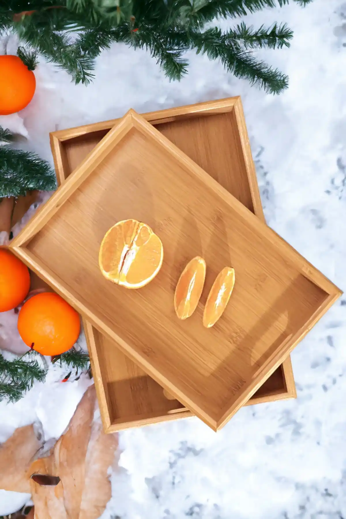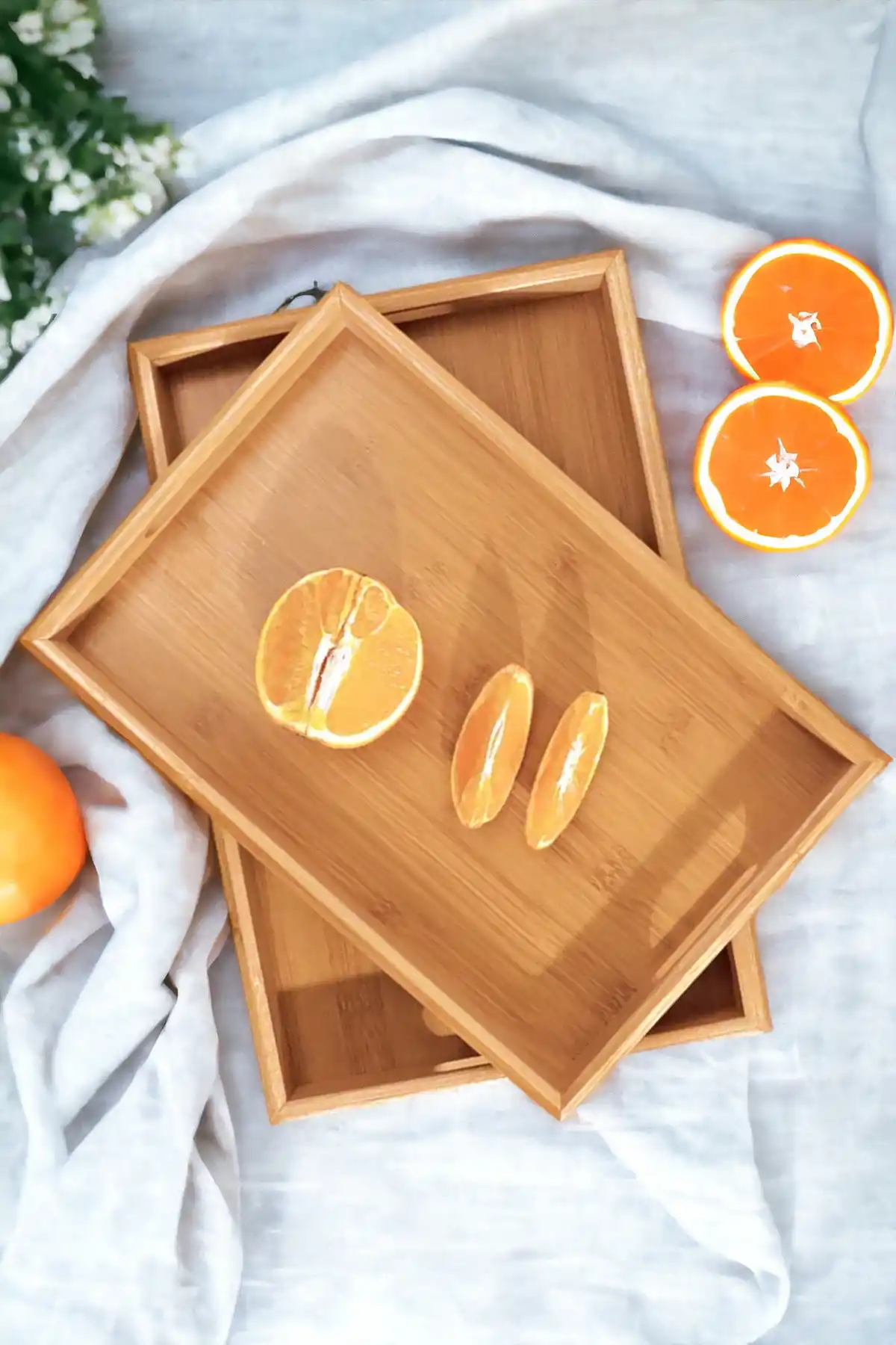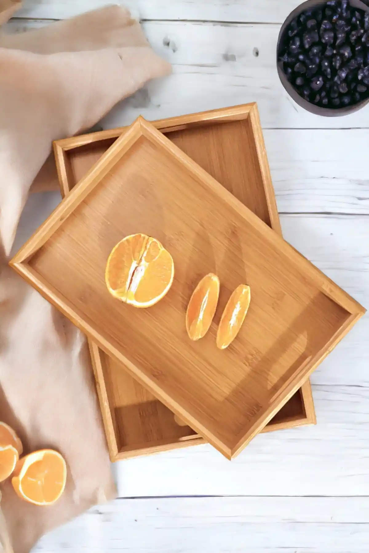 • Paket İçeriği: 2 Adet Lüx Kulplu Dikdörtgen Bambu Tepsi Bulunmaktadır. ( 1 adet büyük boy tepsi + 1 adet orta boy tepsi )