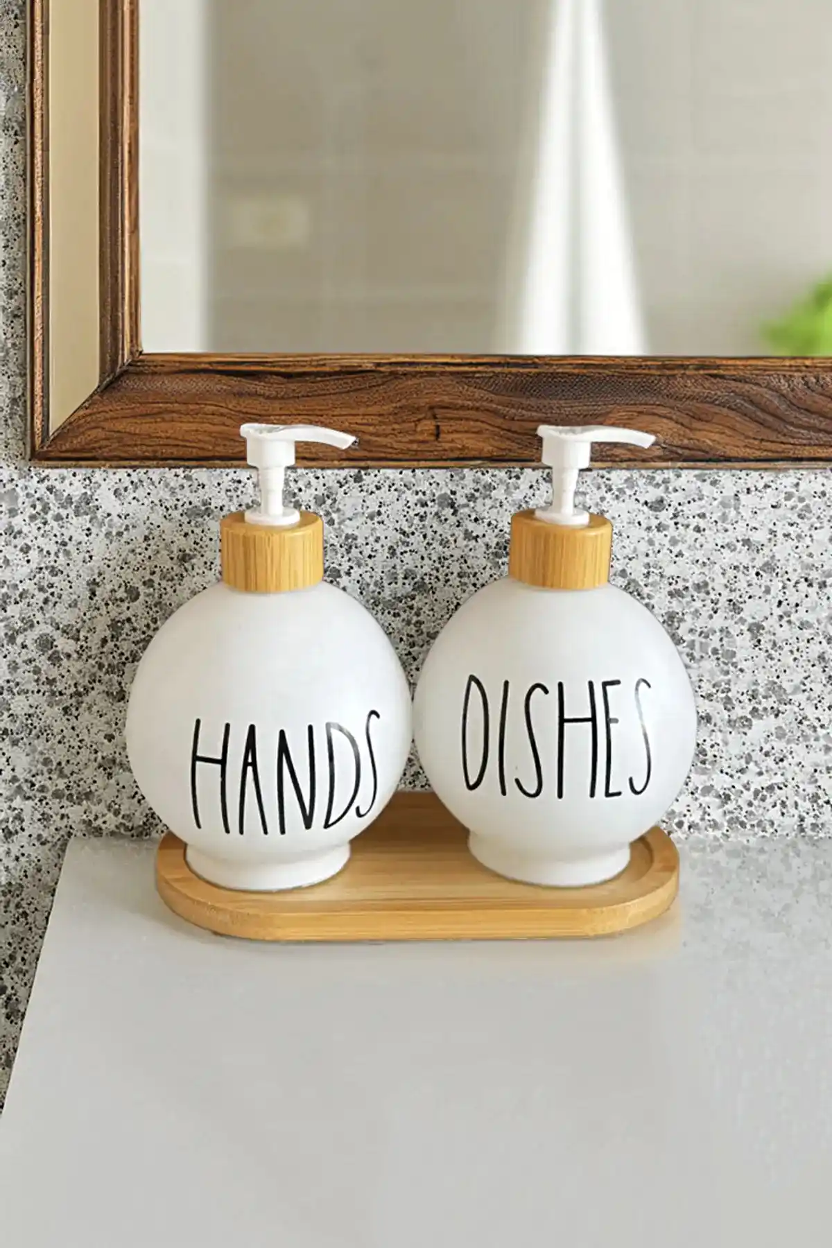 • Bulaşık ve el sabunu dispenseri seti, bambu sabunluk pompası ve bambu bulaşık sabunu tepsisi ile uyumlu kaliteli camdan yapılmıştır. Bu, kendinizi iyi hissettirecek bir mutfak aksesuarları dekorudur.