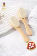 Tilbe Home Doğrulanmış Marka 2li Keçi Kılı Bebek Saç Fırçası ve Tarağı | Ergonomik Ahşap Tutma Saplı Masaj Fırçası