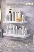 Tilbe Home Doğrulanmış Marka 2'li Figürlü Kendinden Yapışkanlı Craft Banyo Rafı Organizer Duvara Monte Mutfak Düzenleyici Beyaz