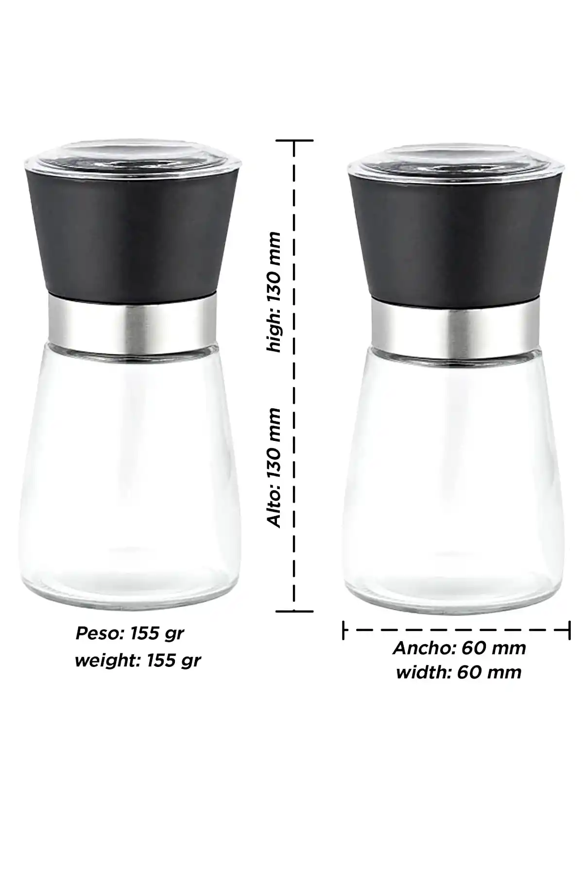 • Tilbe Home 2’li baharat değirmeni seti; tuz, karabiber ve benzeri tane baharatların öğütülmesi için tasarlanmıştır. Cam gövde yapısı sayesinde içindeki baharat miktarı kolayca görülebilir.