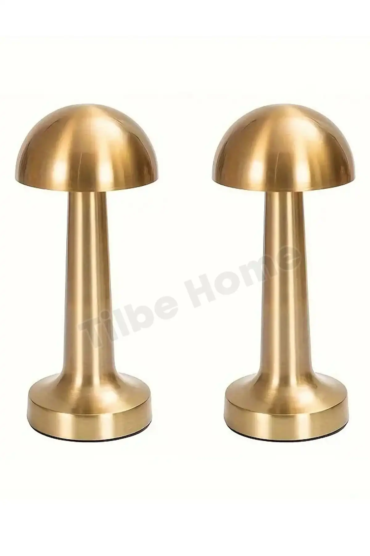 • Tilbe Home Mantar Model Retro Masa Lambası Gold Dimmerli Şarjlı Dekoratif Masaüstü Dekoratif Mantar Lamba