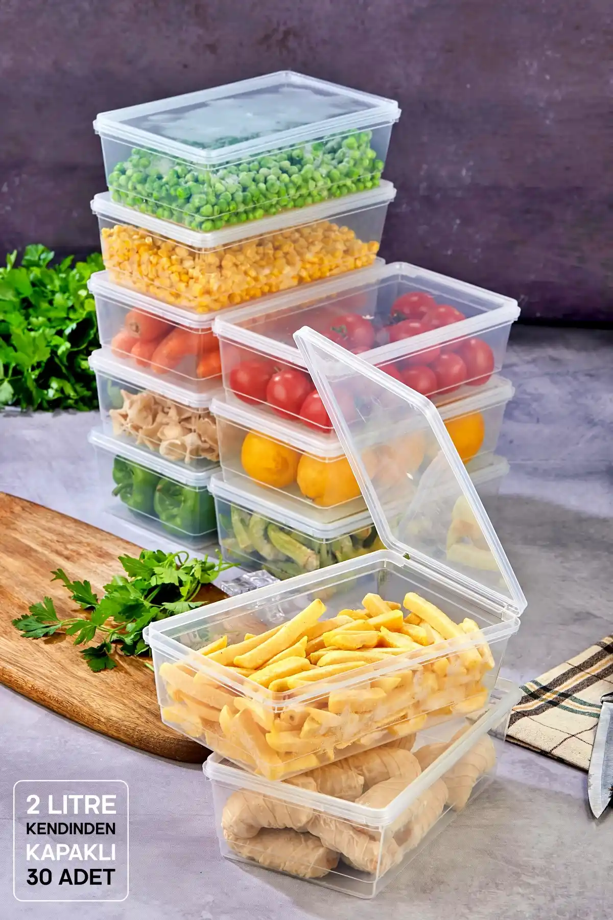 Tilbe Home Doğrulanmış Marka 30'lu Buzdolabı Organizer Kendinden Kapaklı Mikrodalga Difrize Uygun 2000ml Dikdörtgen Saklama Kabı