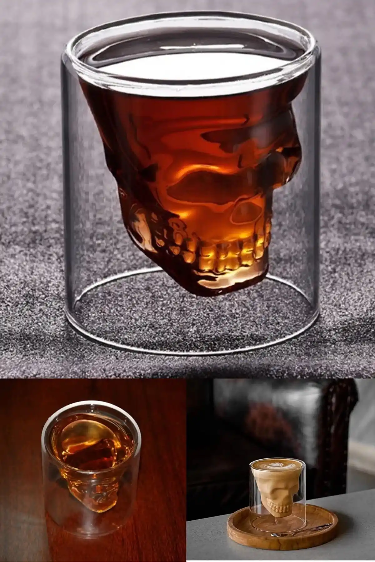 • Paket İçeriği: 3'lü Kuru Kafa Viski Shot Bardak Seti Bulunmaktadır.