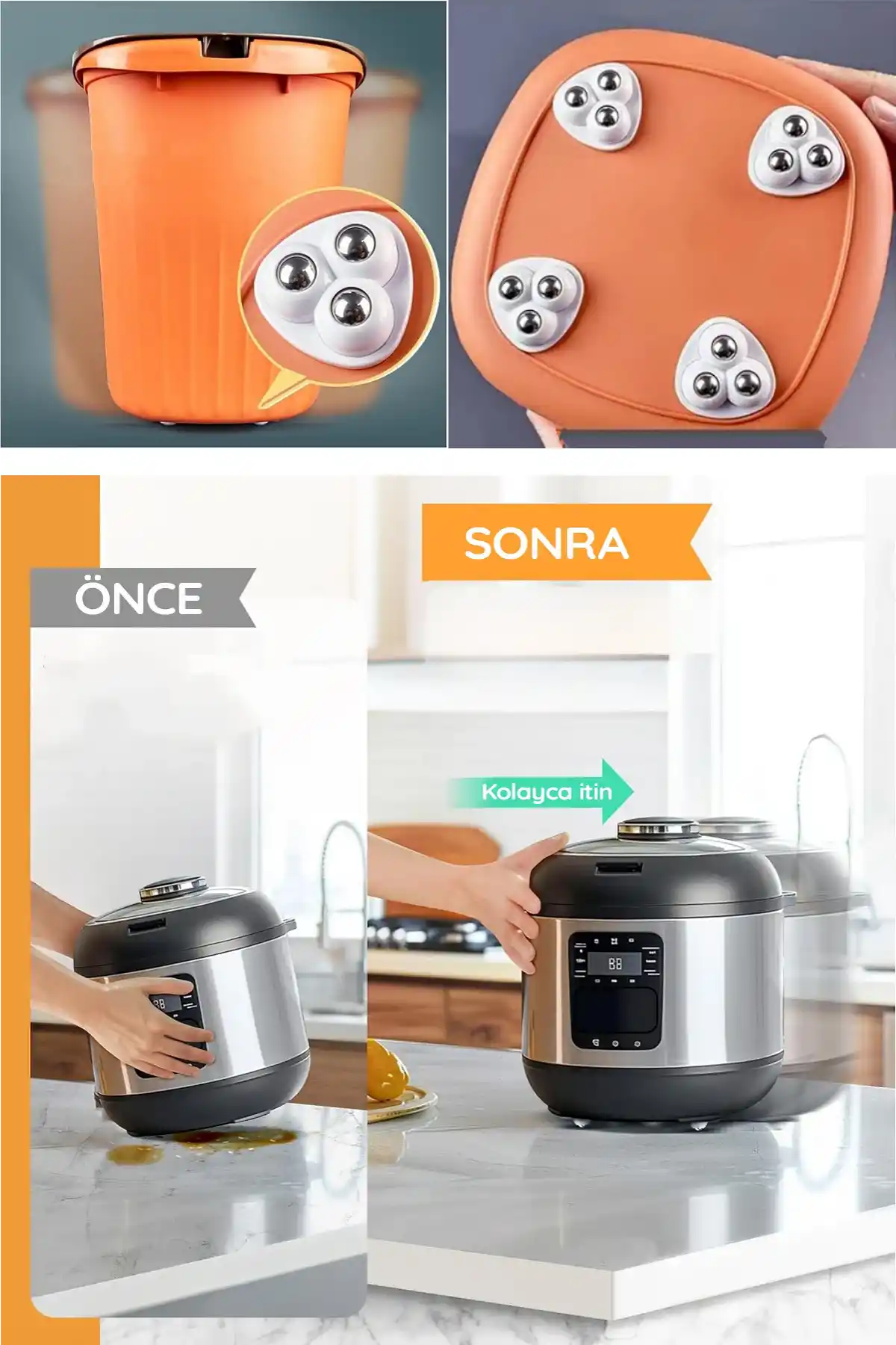 • Tilbe Home 4 Adet 360 Derece Döner Çelik Bilye Tekerlekli Eşya Taşıma Yapışkanlı Eşya Kaydırma Aparatı Seti