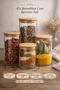 • Mutfağınızda düzeni ve estetiği bir araya getiren 4’lü borosilikat cam kavanoz seti, farklı boy seçenekleri sayesinde hem baharat hem de kuru gıda saklama için ideal bir çözümdür.