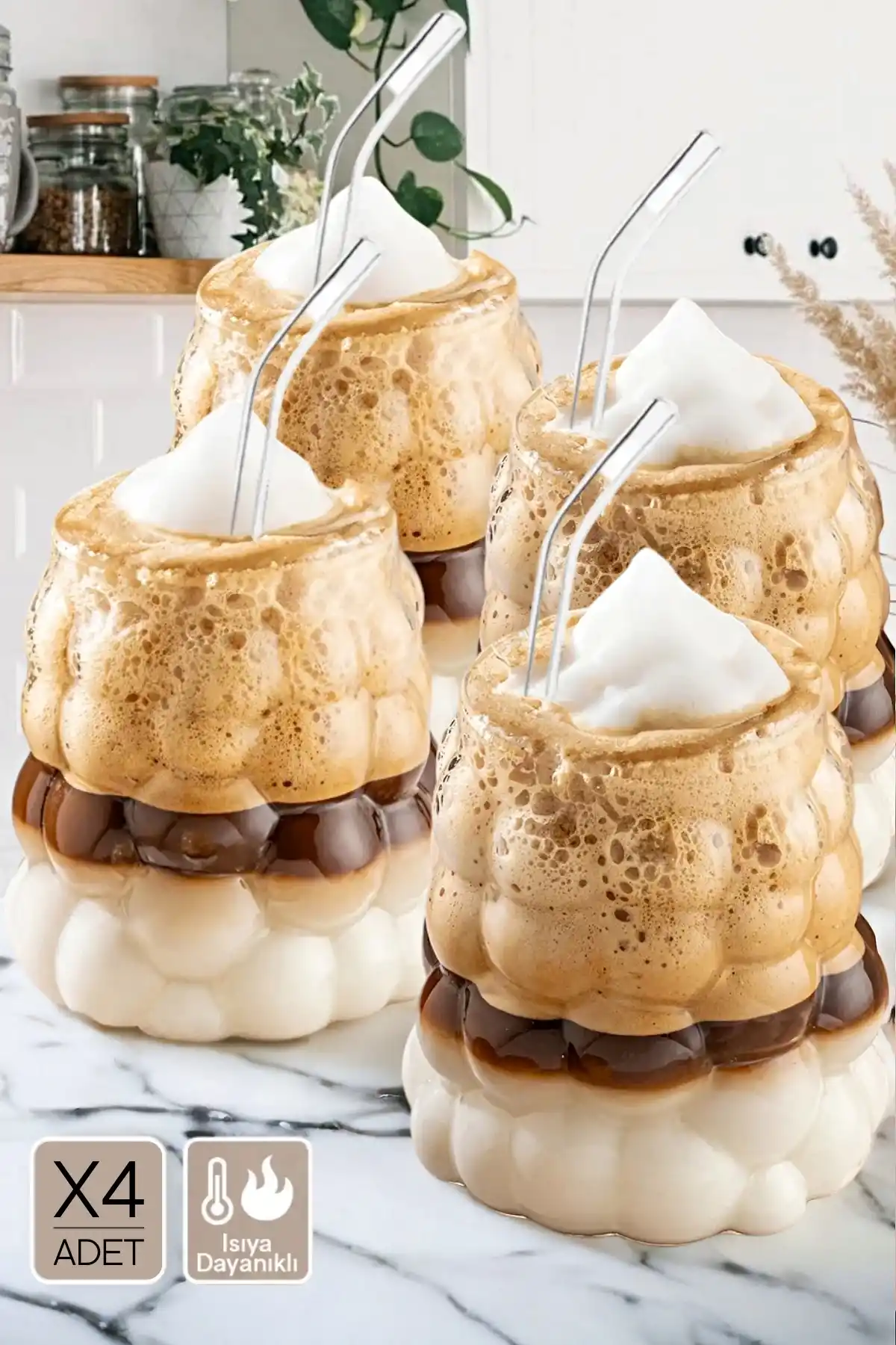 Madamev Doğrulanmış Marka 4lü Boncuk Bardak Pipetli Meşrubat Su Kahve Sunum Bardağı Isıya Dayanıklı Üzüm Tanesi Bardağı 350ml