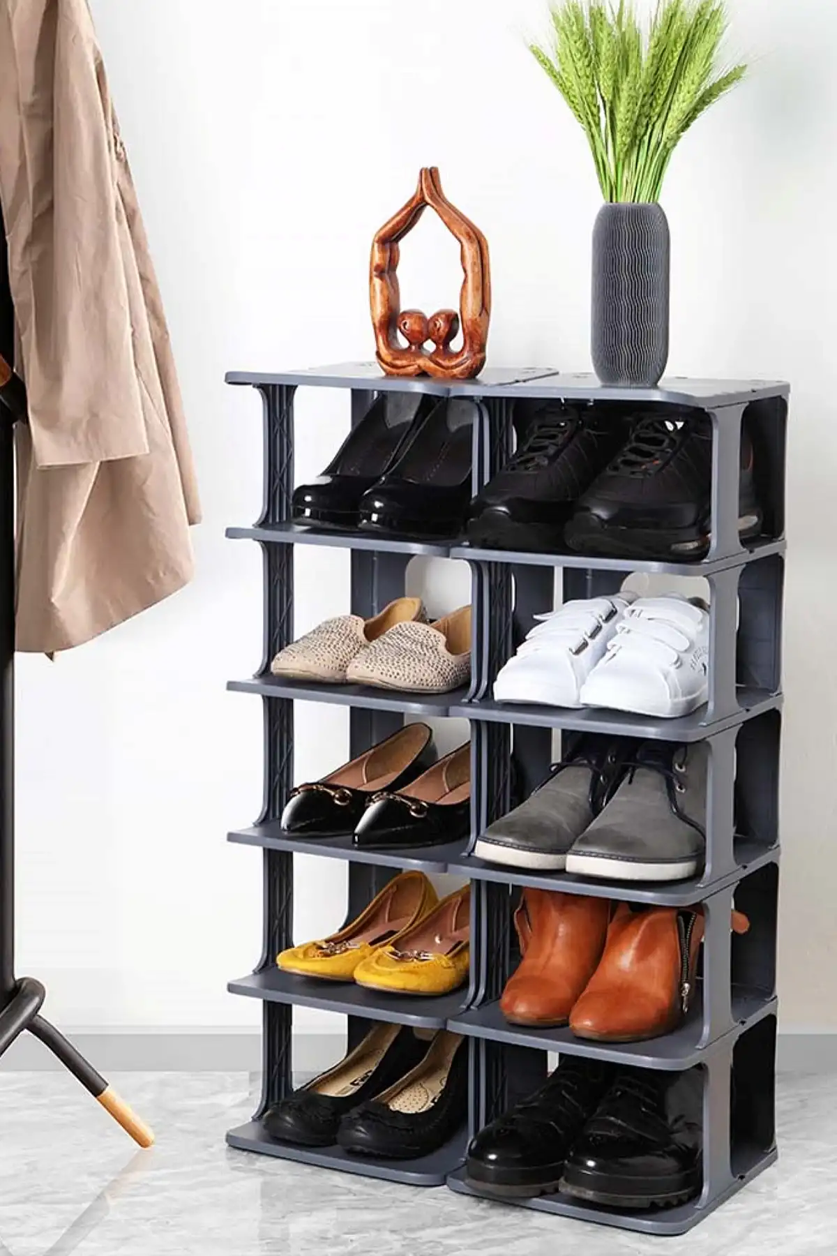 Ev ve ofisler için ideal olan 5 Katlı Lüks Ayakkabılık, şık ve kullanışlı tasarımıyla dikkat çeker. Modüler yapısı sayesinde kolayca monte edilebilir ve istenildiğinde sökülerek farklı alanlarda kullanılabilir. ayakkabılarınızı düzenli tutarken şık bir görünüm sunar.