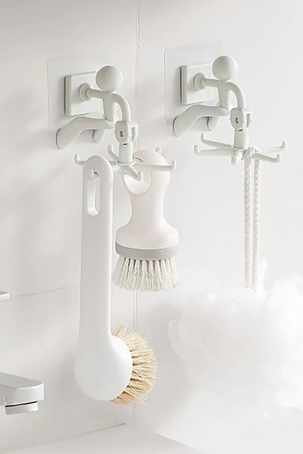 Tilbe Home Doğrulanmış Marka 6 Kancalı Rambo Figürlü Döner Başlı Askılık Mutfak Banyo İz Bırakmaz Yapışkanlı Organizer Askı Seti