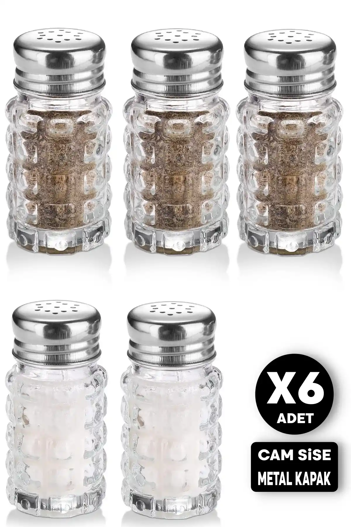 • Paket içeriği: 6'lı Cam Tuzluk Karabiberlik Baharatlık Lokanta Ev Ofis Metal Başlıklı Yuvarlak Still Tuzluk Seti bulunmaktadır.