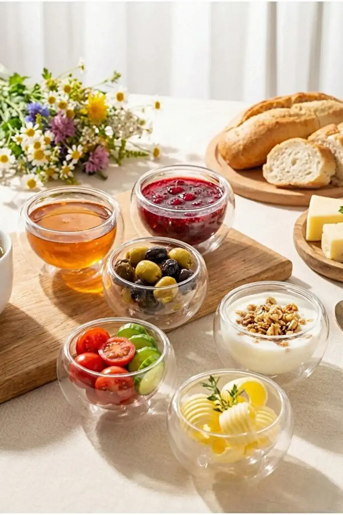 Tilbe Home Doğrulanmış Marka 6lı Çift Çidarlı Mini Sosluk Drajelik Lokumluk Kase Şekerlik Çerezlik Sosluk Reçellik Cam Kase Seti