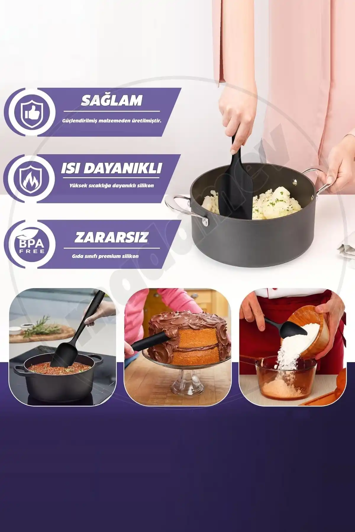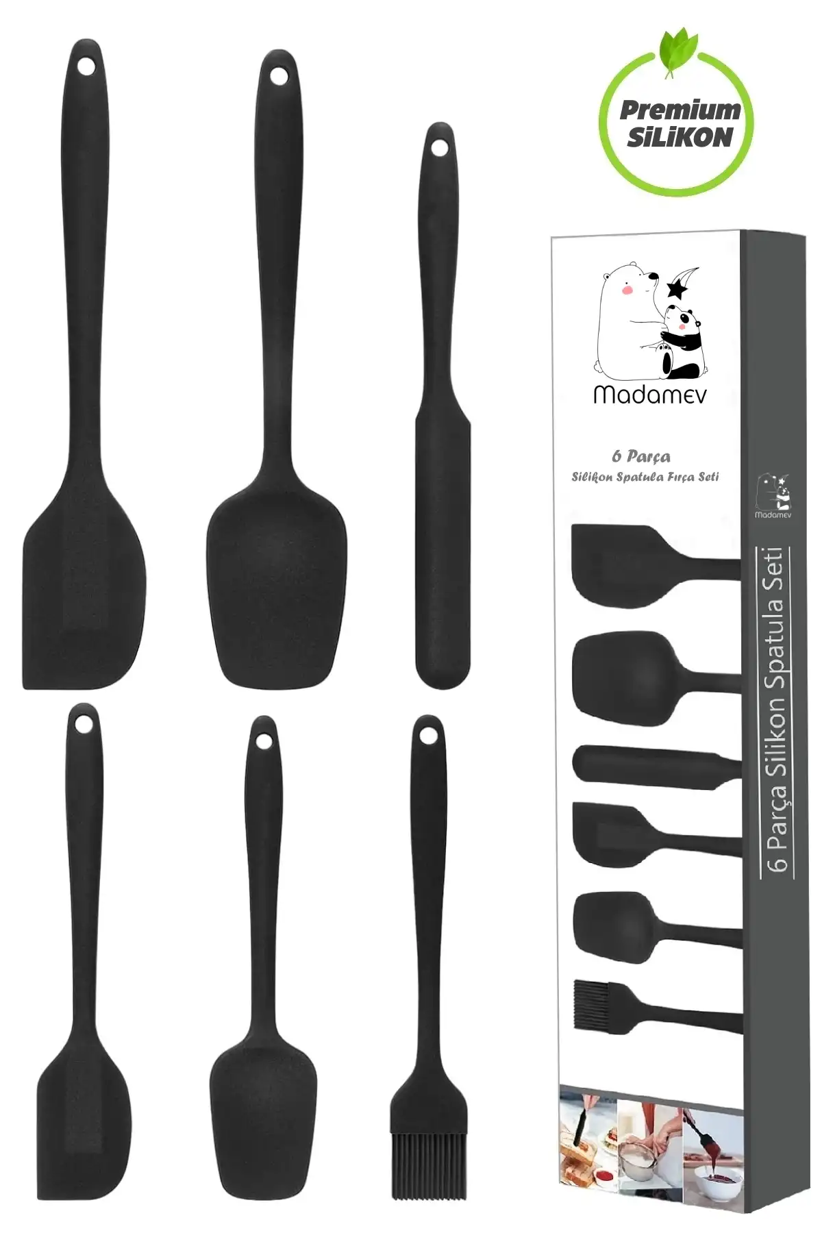 • Madamev Isıya Dayanıklı Yanmaz Yapışmaz Silikon Spatula Seti 6 Parça Siyah Set
