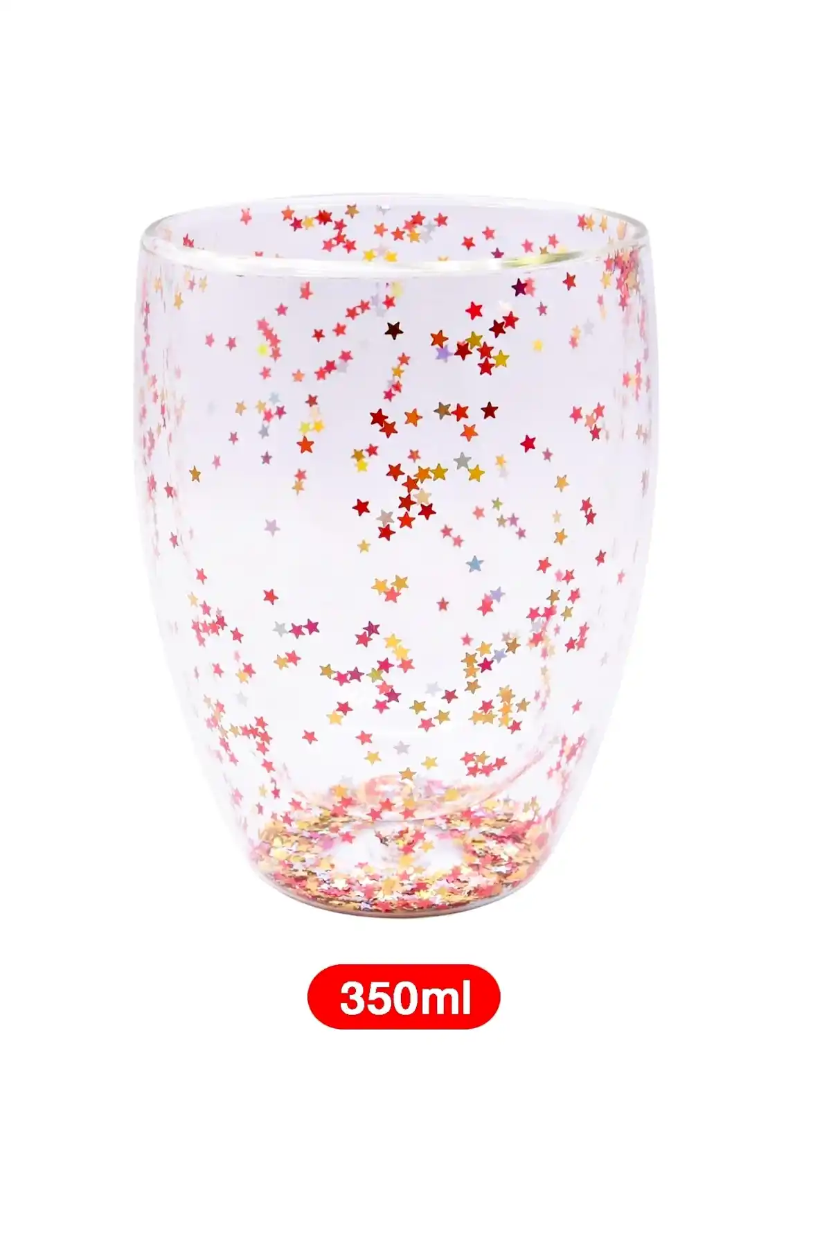 Tilbe Home Doğrulanmış Marka 6'lı Yıldız Simli Çift Cidarlı Bardak Kahve Sunum Kokteyl Bardağı Isıya Dayanıklı Borosilikat 350ml