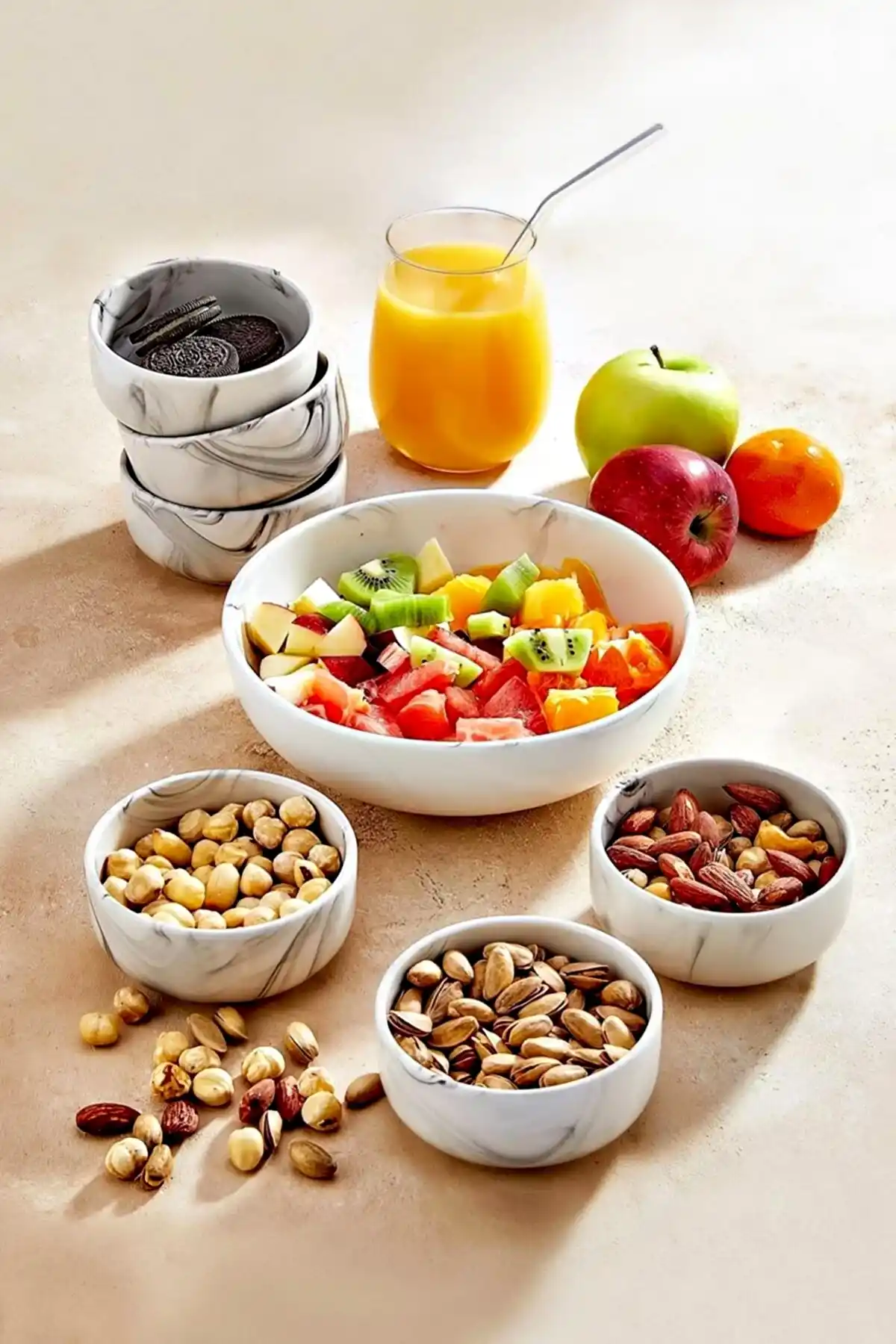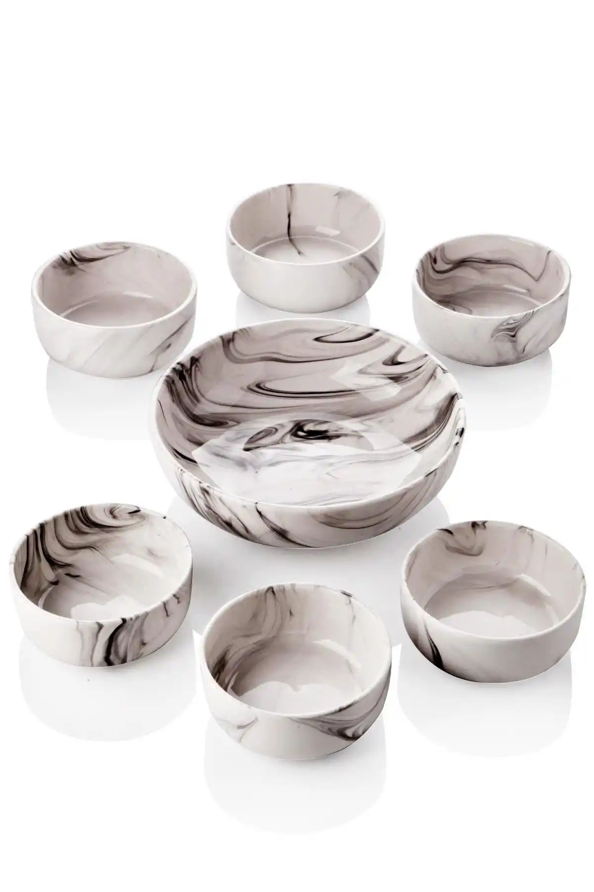 • Tilbe Home 7 Parça Seramik Mermer Desenli Çerezlik Kase Seti