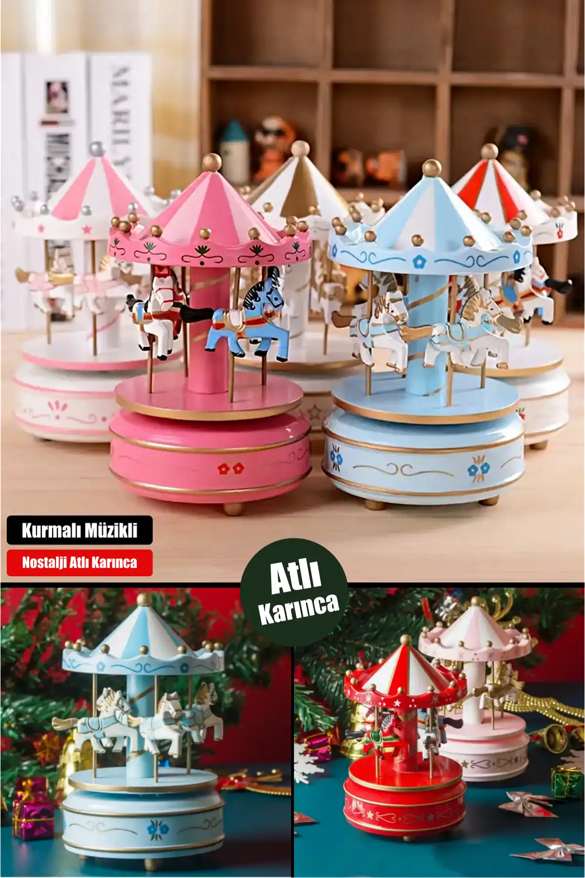 • Atlı Karınca Müzik Kutusu Nostaljik Döner Renkli Atlı Karınca Hediyelik Eşya Kurmalı Müzik Kutusu