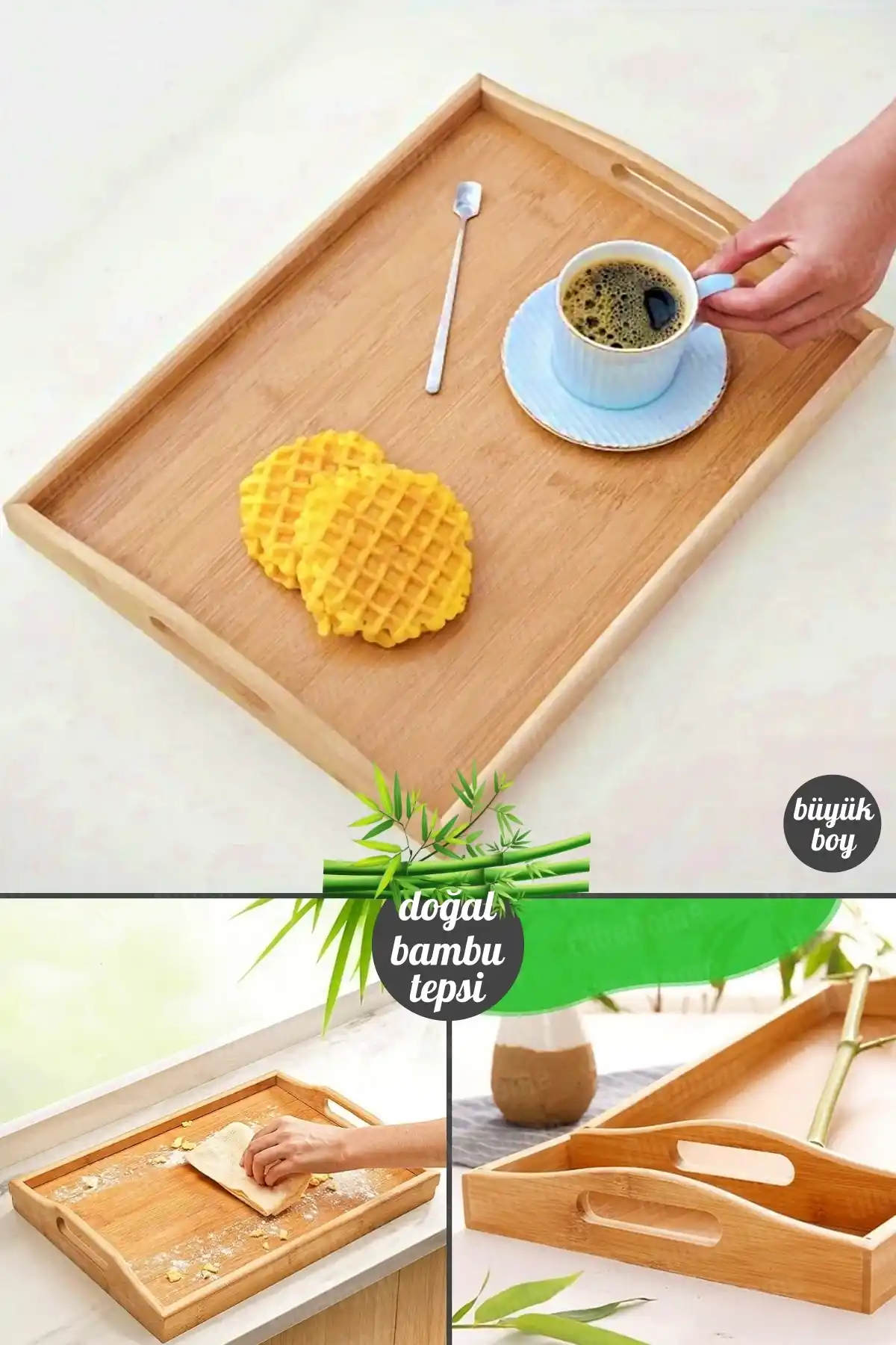 • Paket İçeriği: 1 Adet Lüx Kulplu Dikdörtgen 40X29 Büyük Boy Bambu Tepsi Bulunmaktadır.