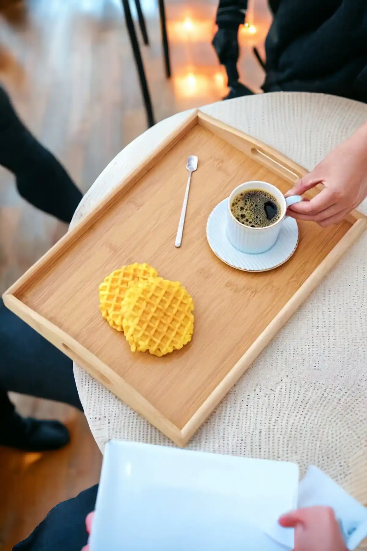 Tilbe Home Doğrulanmış Marka Bambu Çay Tepsisi Lüx Kulplu Dikdörtgen 40X29 Büyük Boy Kahve Çay Servis Sunum Doğal Bambu Tepsi