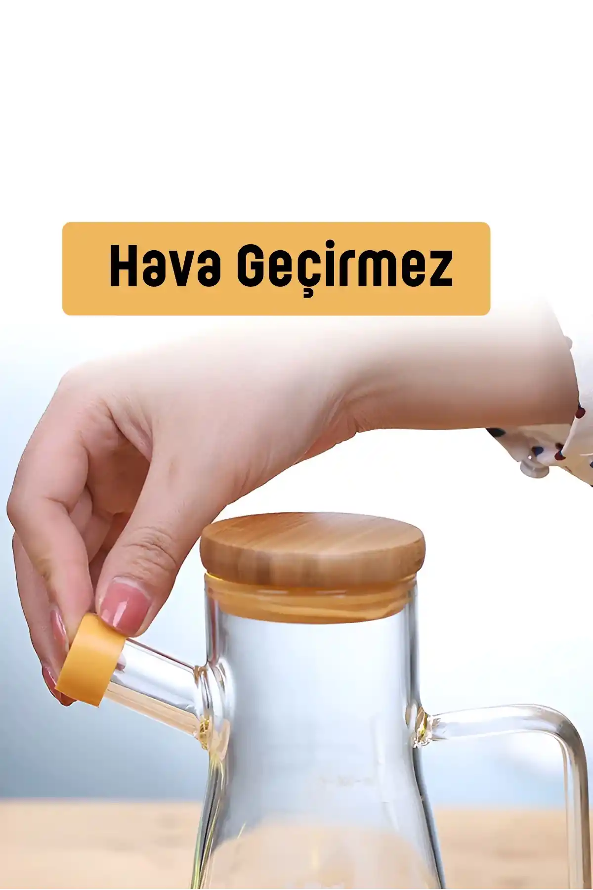 Madamev Doğrulanmış Marka Bambu Kapaklı Cam Yağdanlık Vakumlu Ahşap Stantlı Sirkelik Zeytinyağı Şişesi Yağlık 900 ml