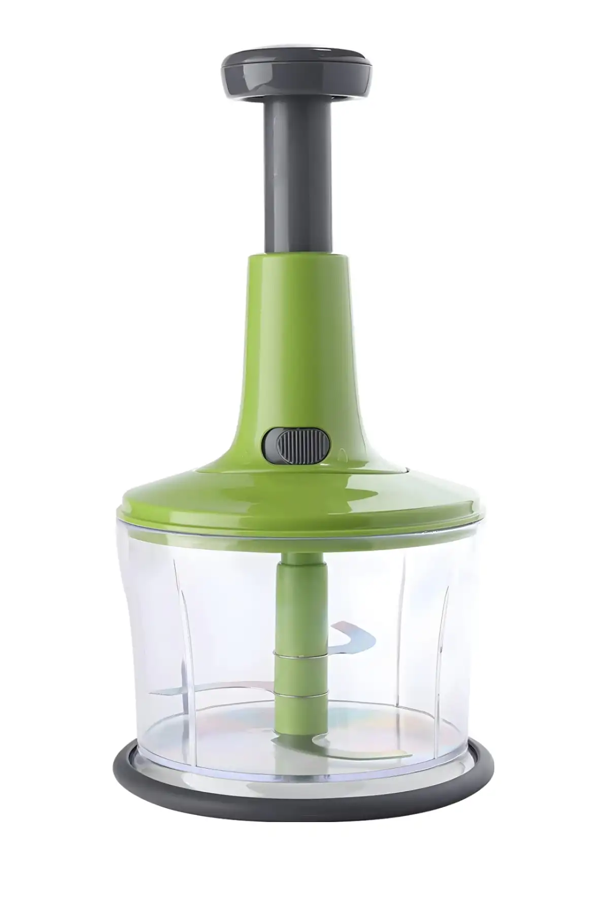 • Tilbe Home Pratik Basmalı El Rondosu 3 Çelik Bıçaklı 1 lt Hazneli Sebze Meyve Soğan Doğrayıcı Mutfak El Robotu Kesici