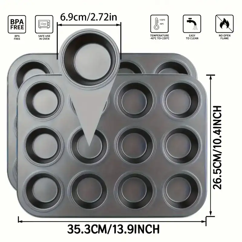 12 gözlü birinci sınıf çörek tepsisi, kek, çörek ve daha fazlasını pişirmek için harika.