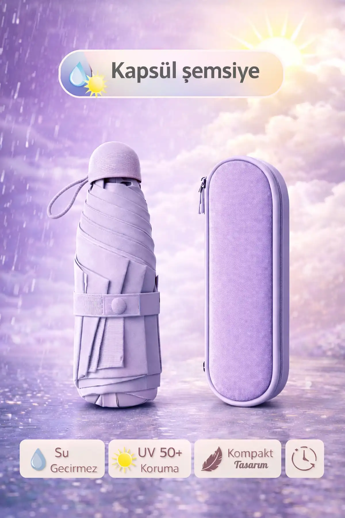 • Kapsül Şemsiye, kompakt yapısı sayesinde çanta, sırt çantası veya araç içerisinde kolayca taşınabilir.