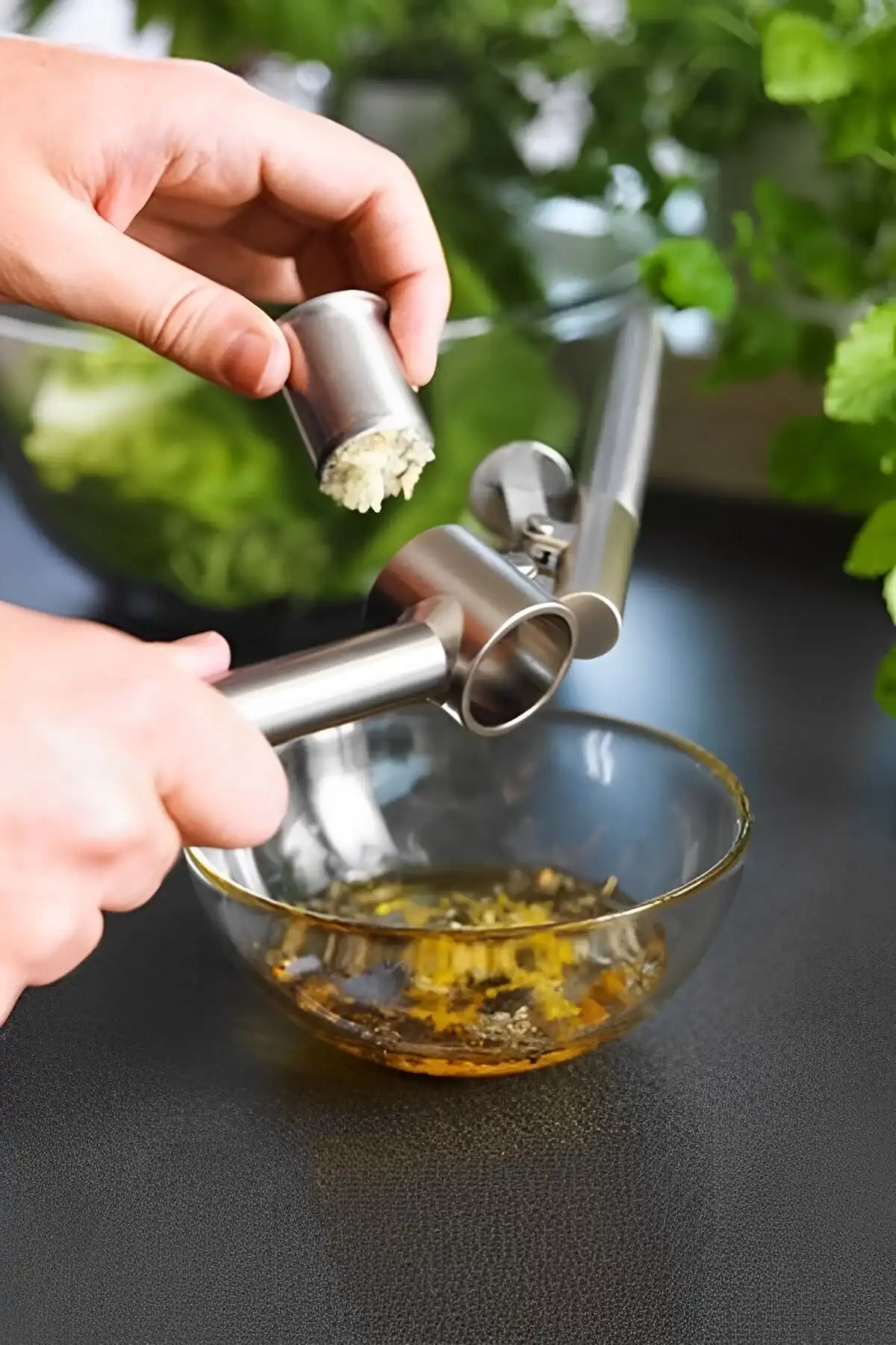 • Tilbe Home Çelik Sarımsak Ezici Press Pratik Hazneli Sarımsak Ezme Aparatı Paslanmaz Çelik Sarımsak Ezici Press