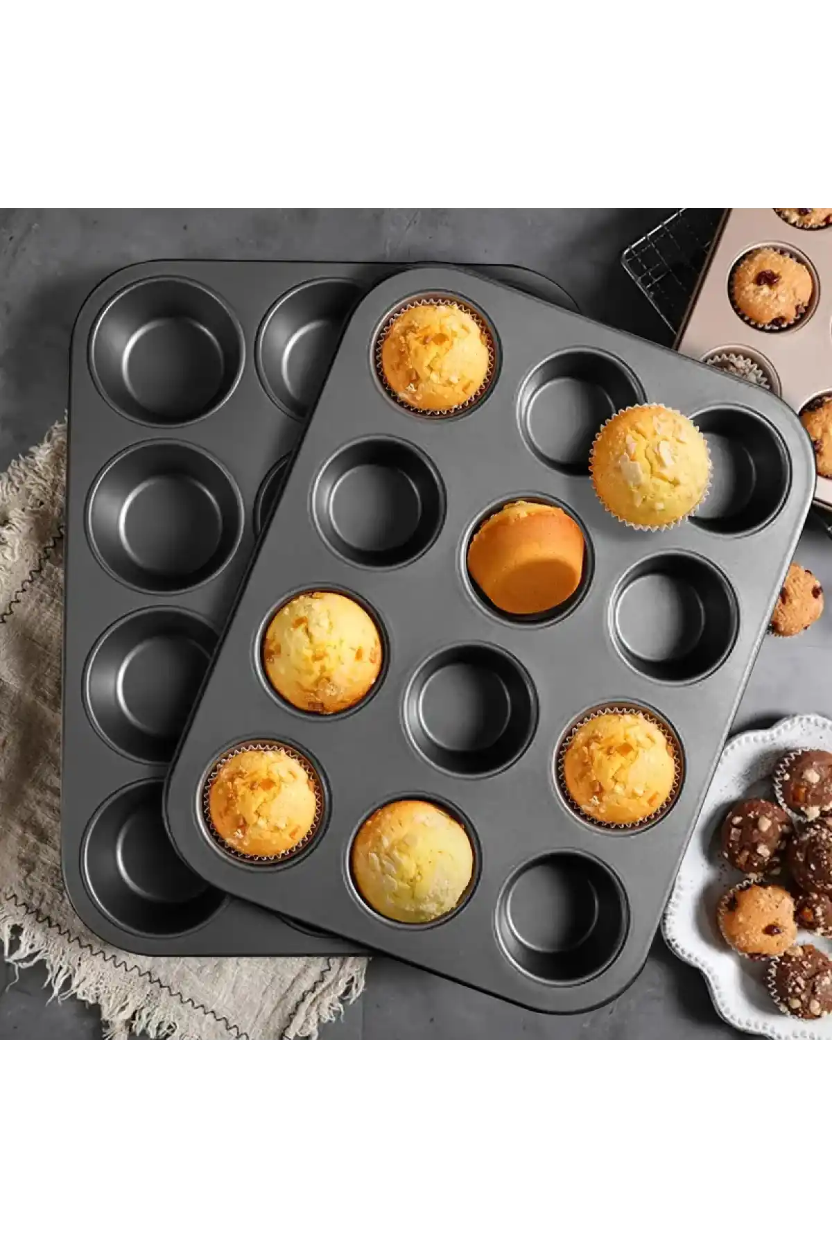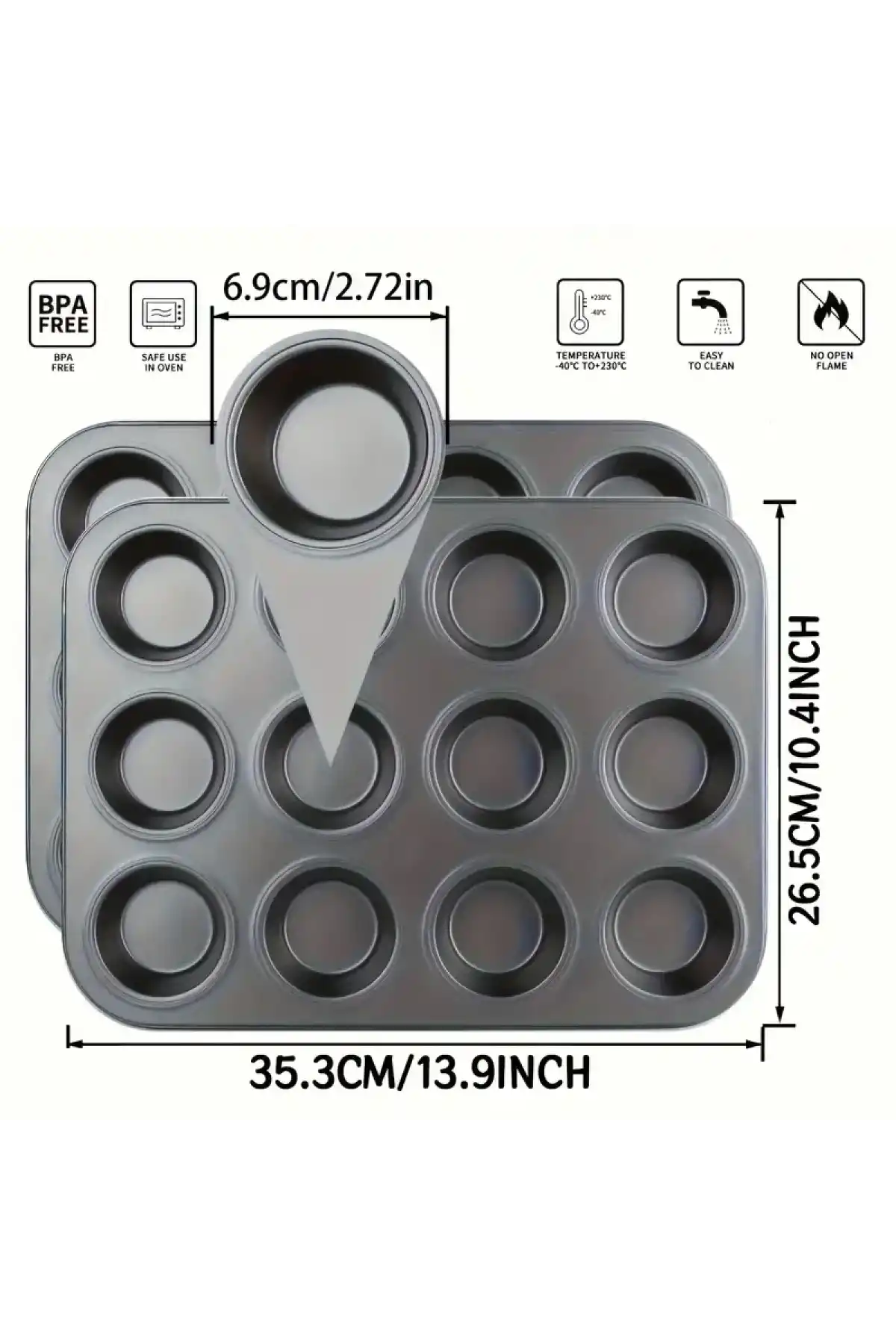 12’li muffin ve cupcake kalıbı, paslanmaz karbon çelikten üretilmiştir. Çift kat yapışmaz kaplama sayesinde kekler kolayca çıkar ve temizlemesi çok kolay ve pratiktir.