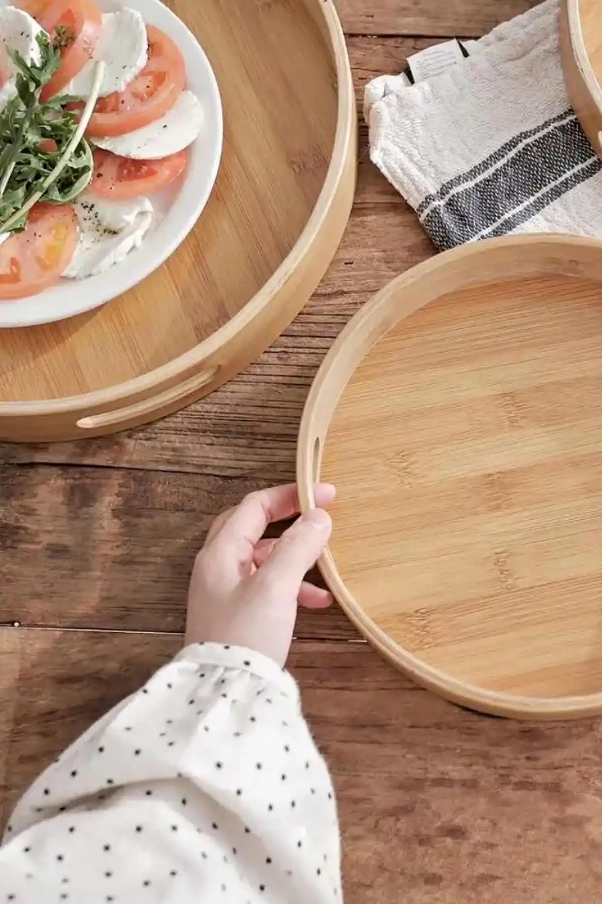 • Paket İçeriği: 3 Adet Büyük Lüx Yuvarlak Bambu Tepsi Bulunmaktadır.