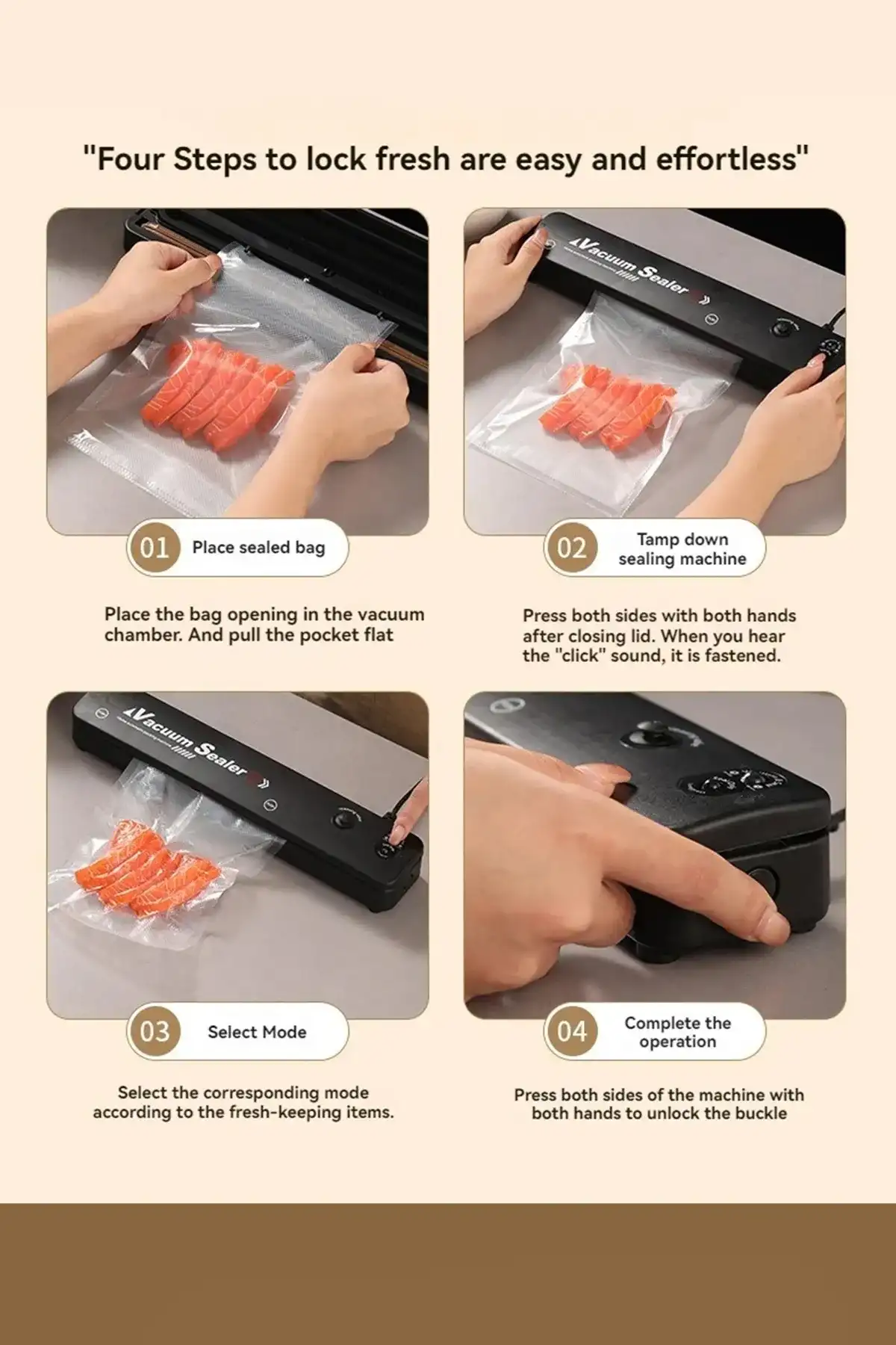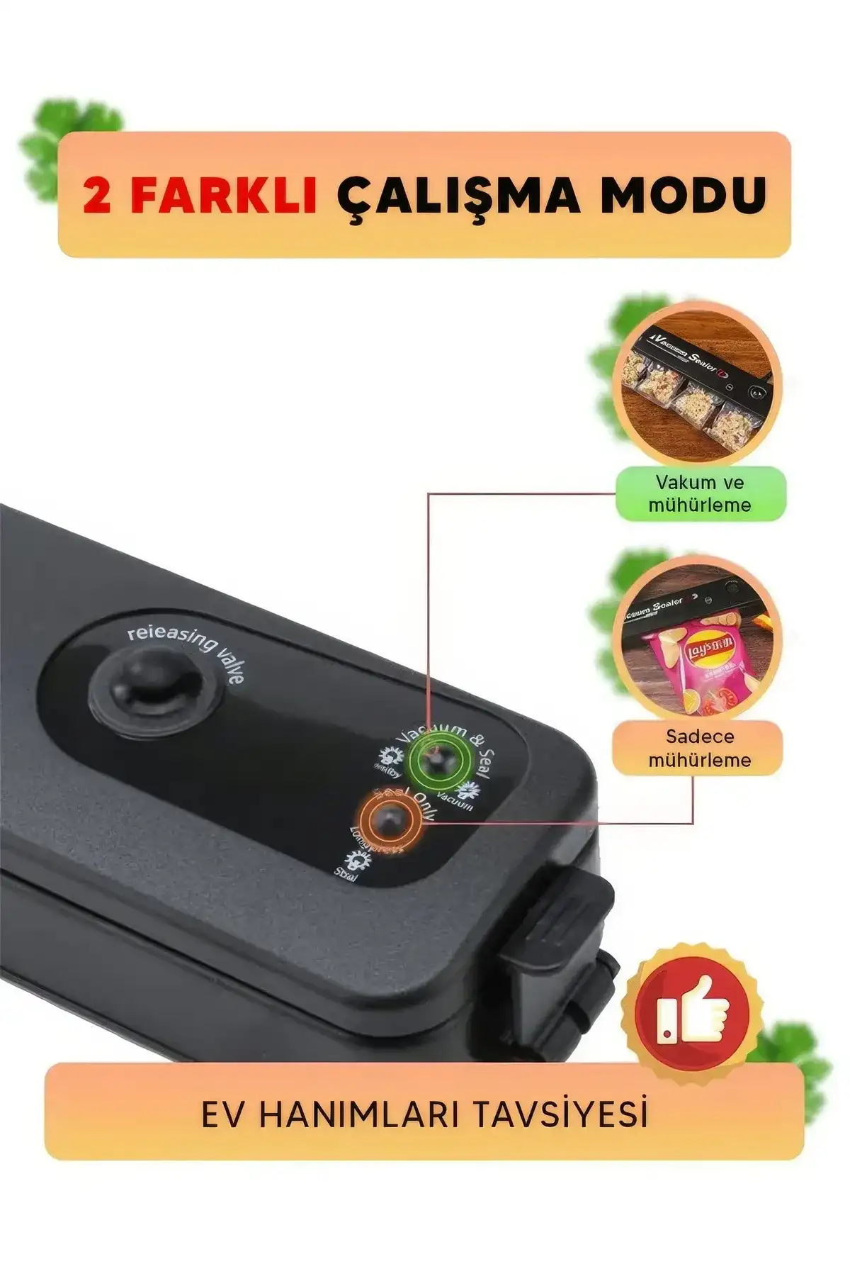 Ürünler lezzetini, nesneler yeniliğini ilk günkü gibi korur.; 1 poşeti ortalama 15 saniyede vakumlar ve ağzını kapatıp yapıştırır.