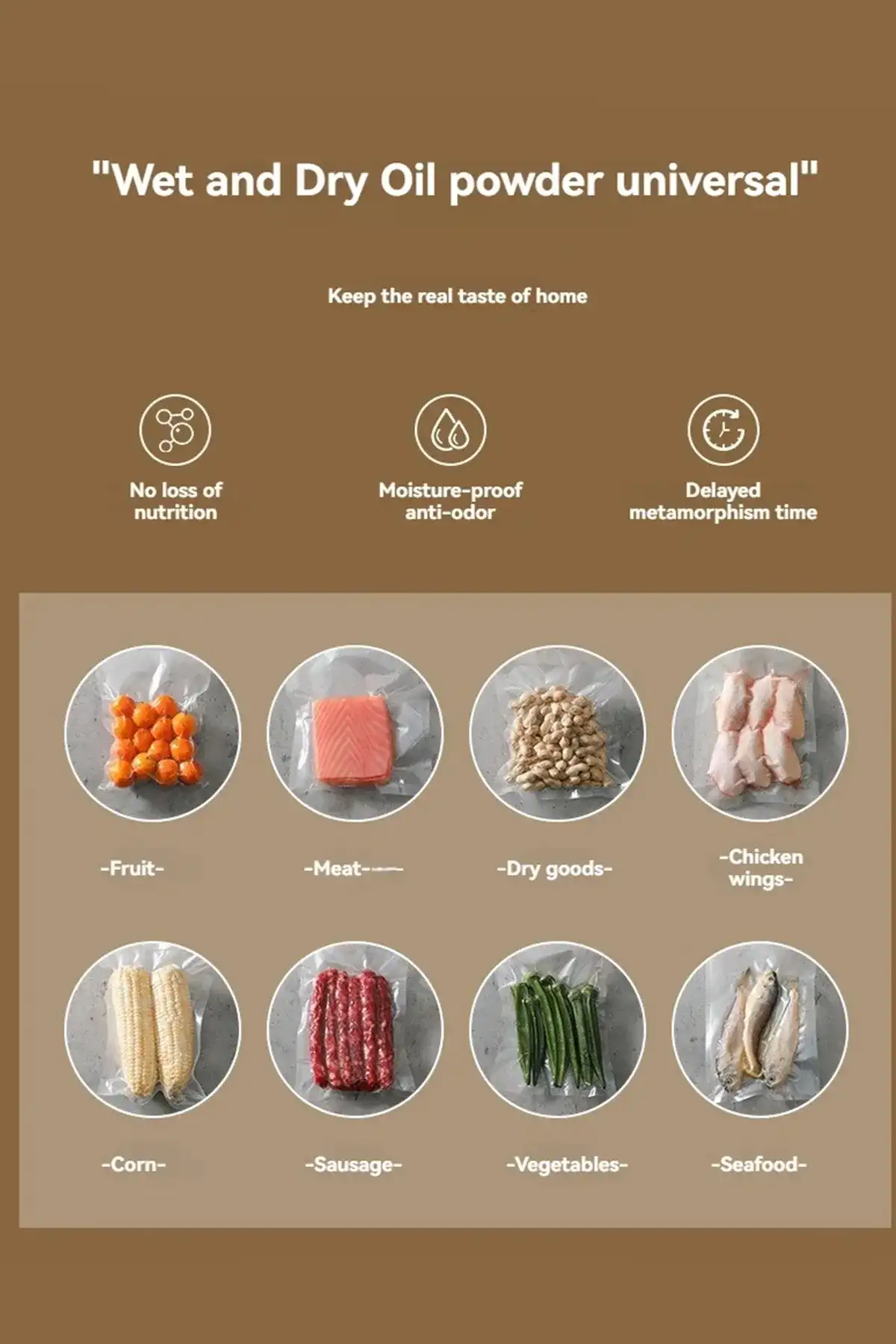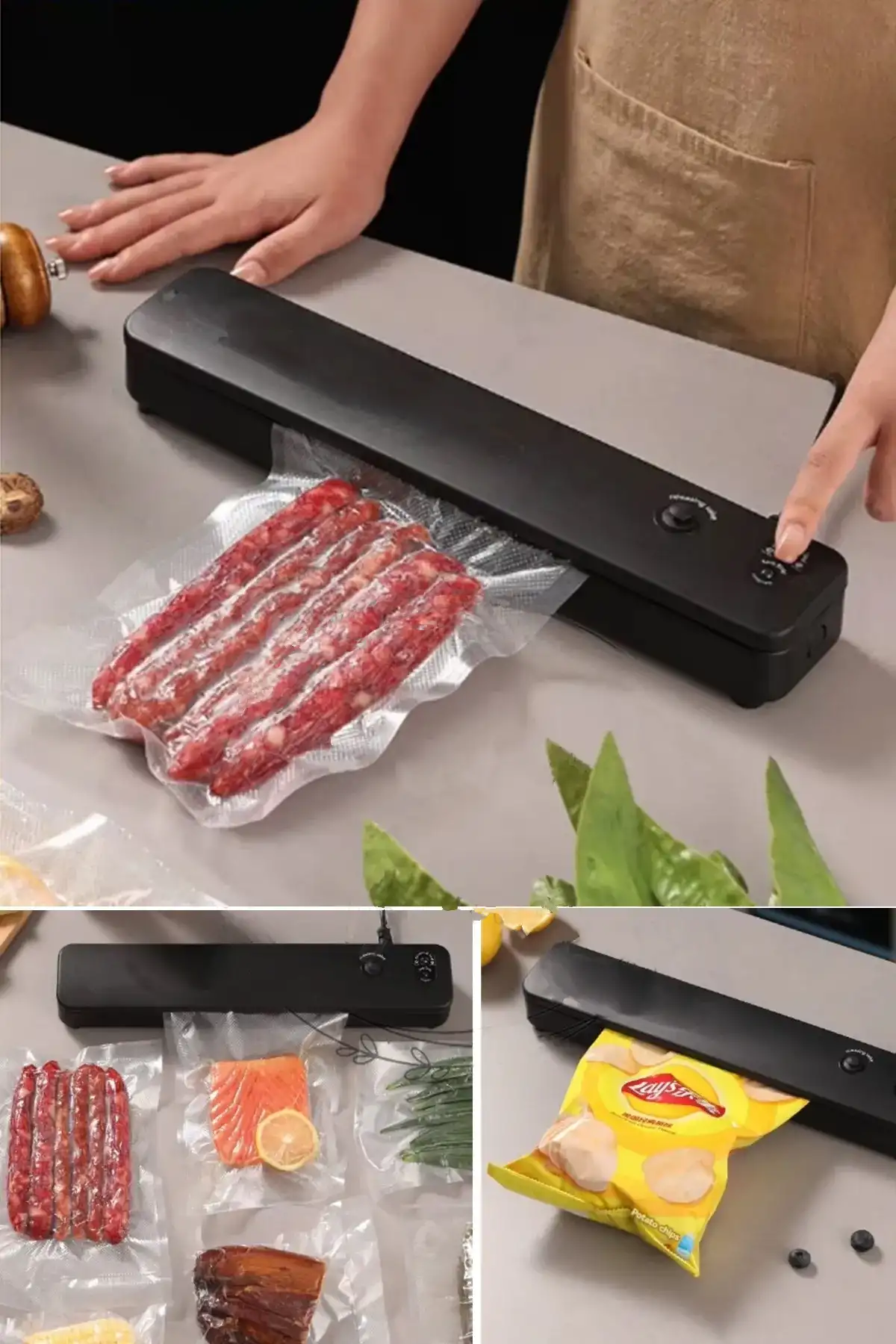 Et, balık, tavuk, sebze, peynir ve peynir çeşitleri, kuru gıda, dağınık olmasını istemediğiniz aklınıza gelebilecek her şeyi kolay, pratik şekilde vakum yapılmasını, taze ve yeni şekilde kalmasını sağlar.