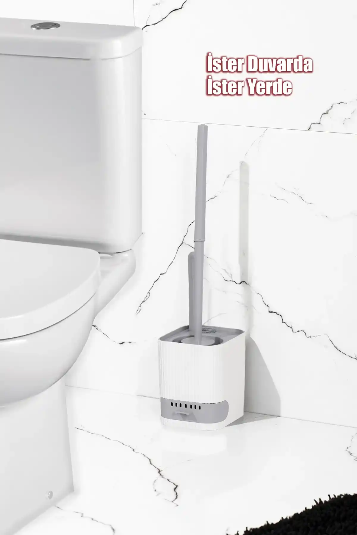 • Tilbe Home Hazneli Klozet Fırçası Banyo Tuvalet Wc Temizleme Fırçası 2li Temizlik Fırçası Hazneli Su Akıtmaz Yerde & Duvara Monte Edilebilir Set