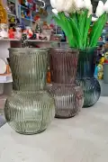 Dekoratif Vazo Büyük Boy Karaf Renkli Çizgili Vazo