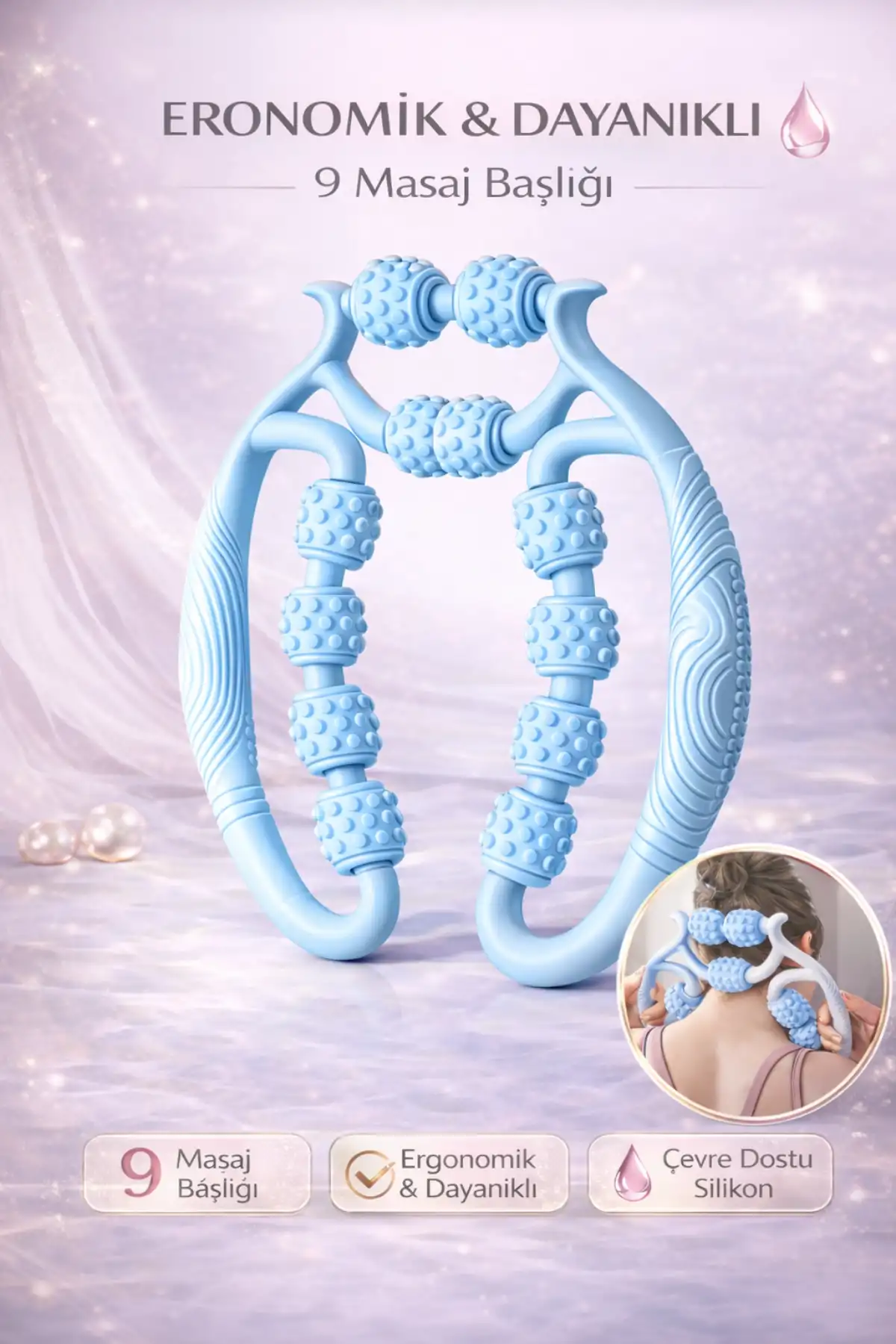 • 9 tekerlekli ayarlanabilir masaj aleti; bacak ve kol bölgelerinde kullanım için özel olarak tasarlanmış, pratik ve etkili bir kişisel bakım ürünüdür.