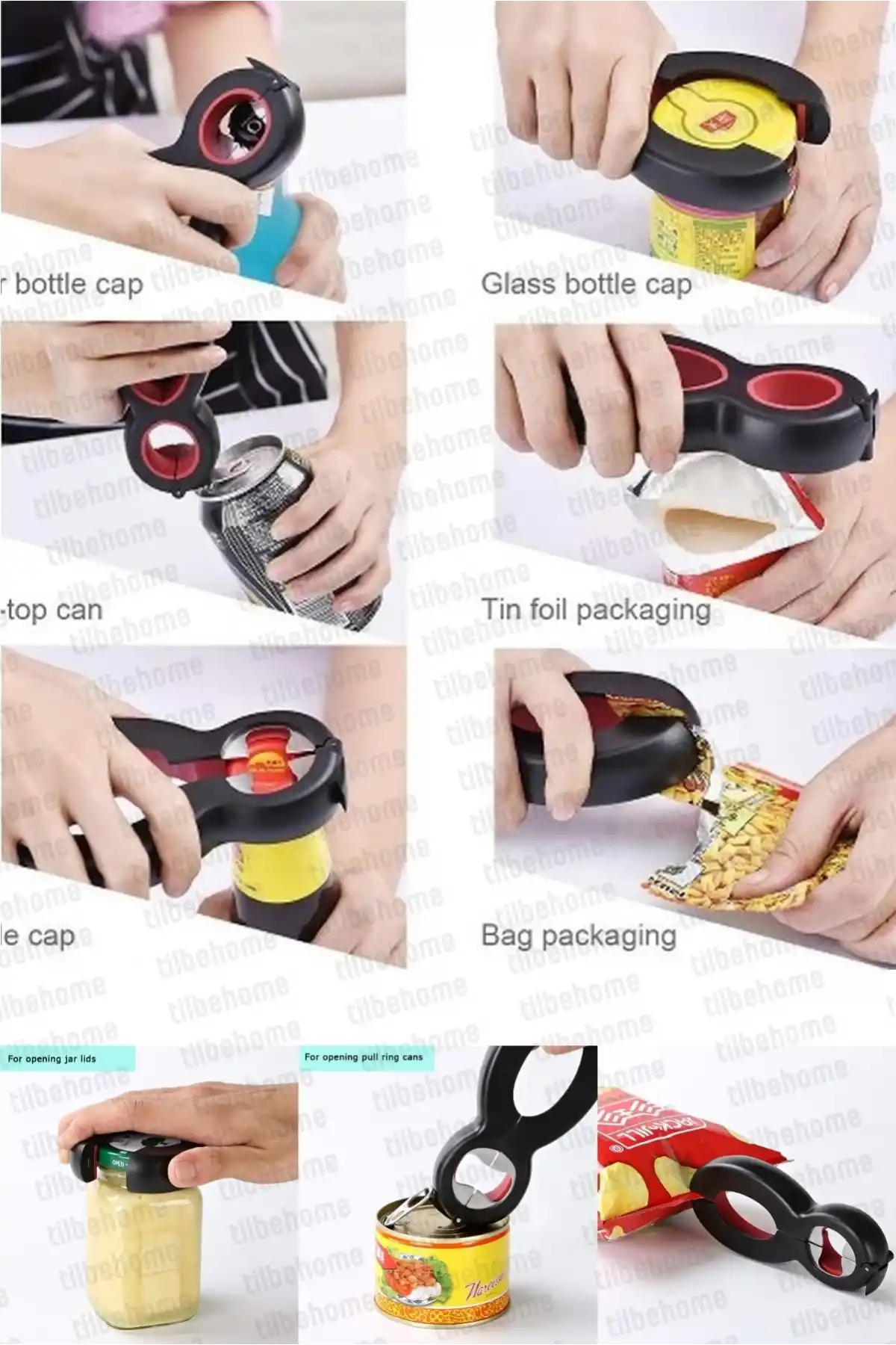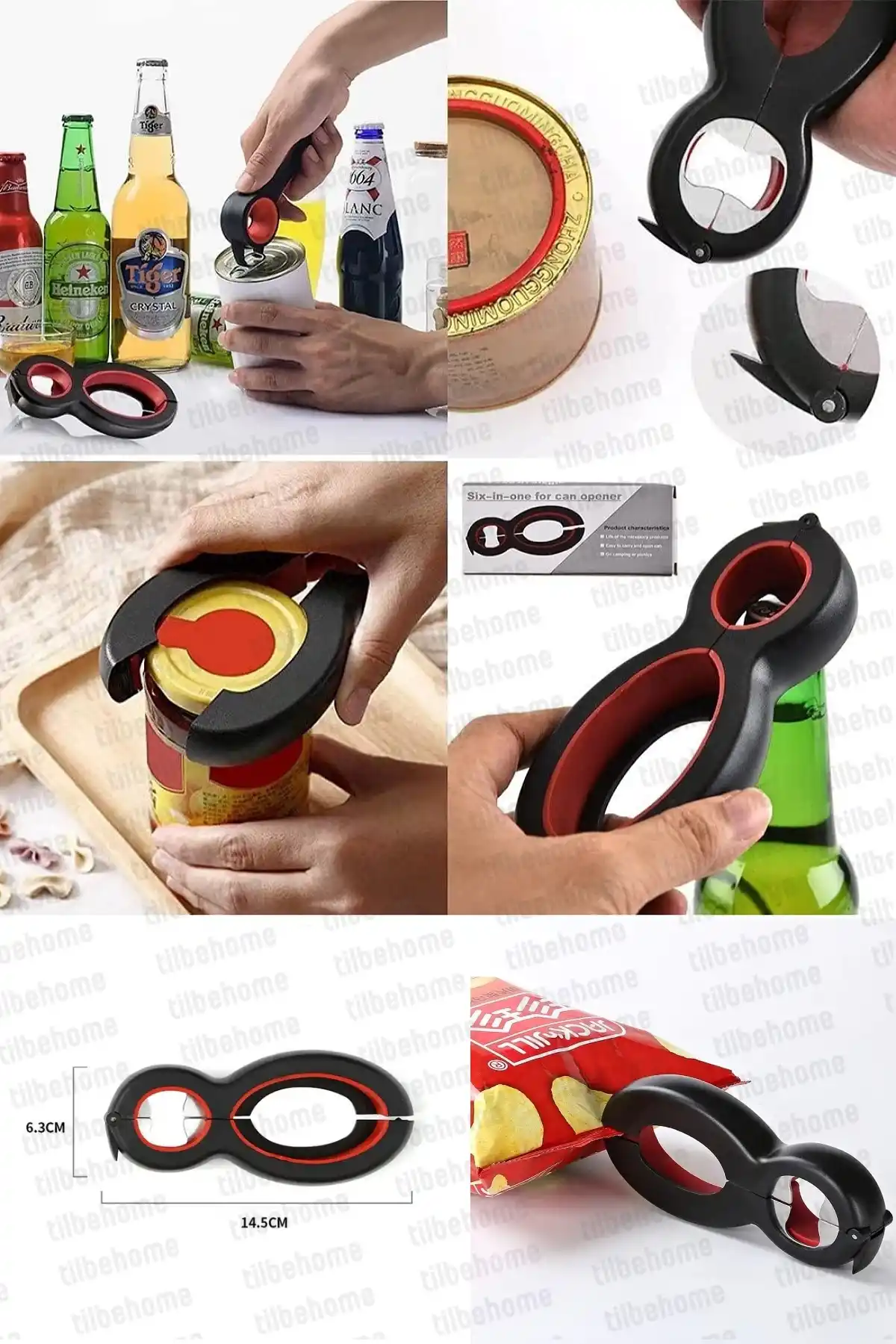 Tilbe Home Doğrulanmış Marka Kavanoz Konserve Açacağı 6+1 Fonksiyonlu Kola Şişe Kapağı Açma Pensesi Kapak Sıkma Mutfak Aleti