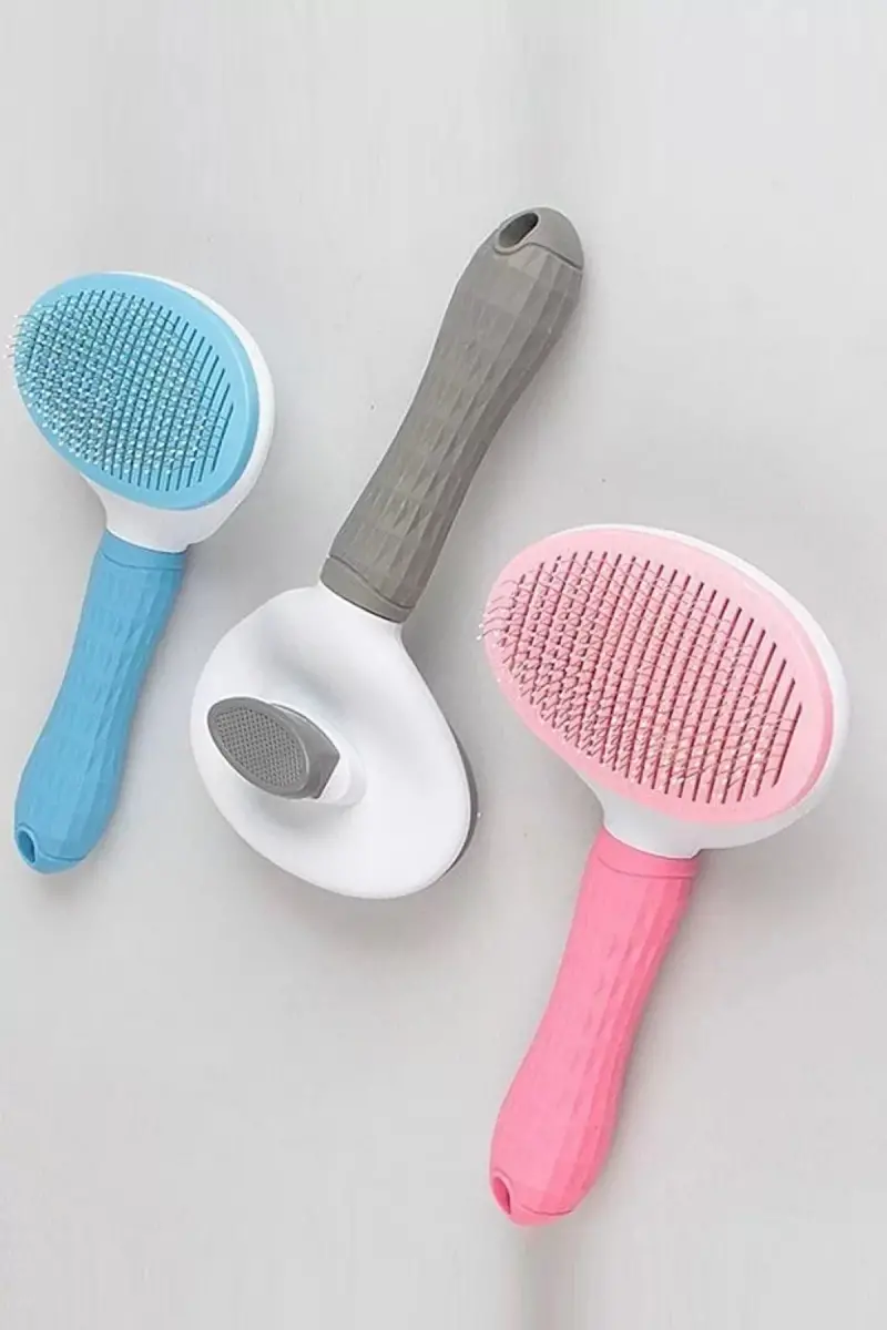 Otomatik Temizlenen Evcil Hayvan Fırçası Kedi Köpek Tüy Toplayıcı Tarak Ürünün arka tarafınında bulunan düğmesine basıldığında taranırken tarakta toplanan tüylerin kolayca taraktan alınması sağlanmaktadır.
