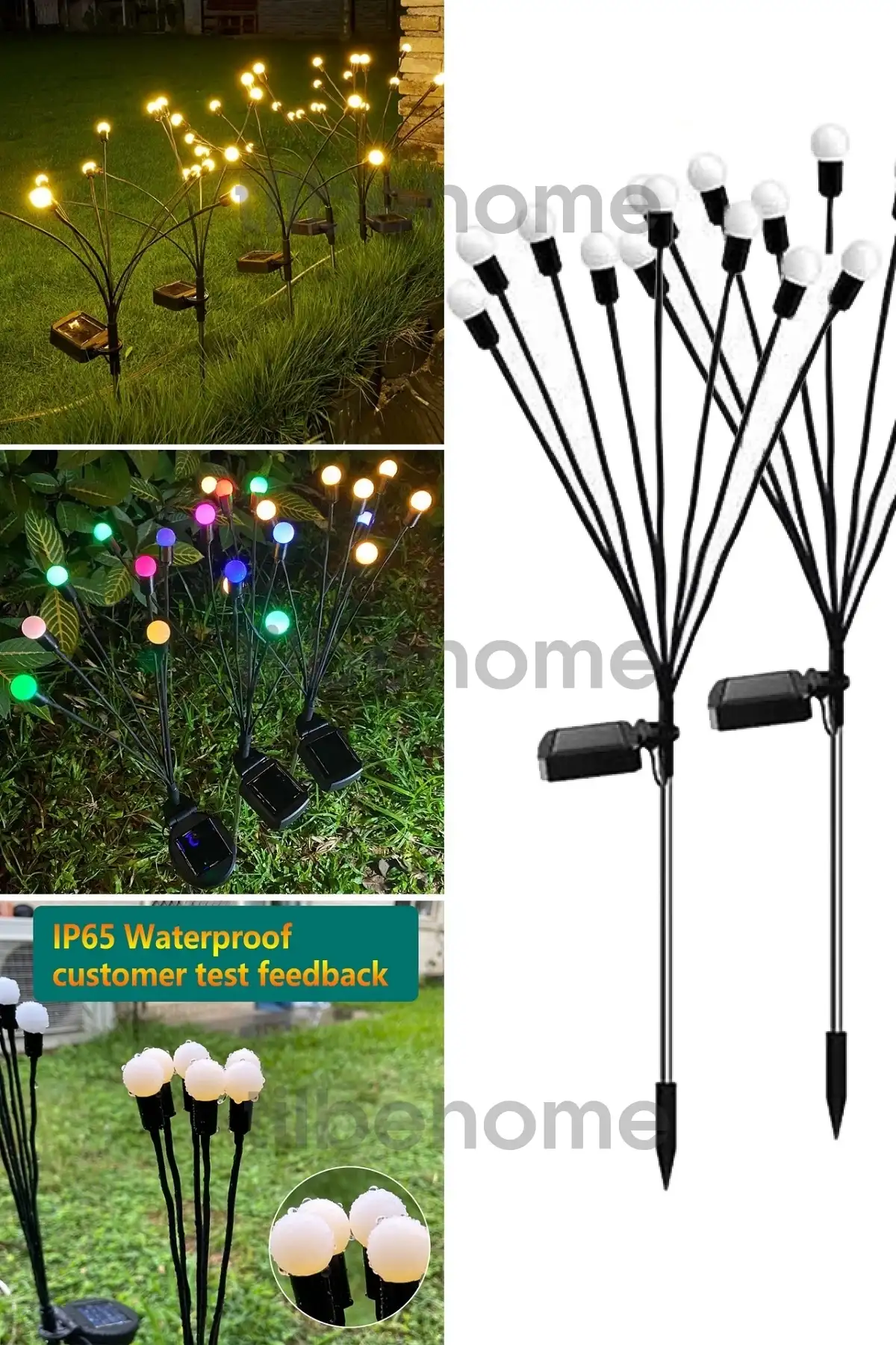 • Kurulumu kolay: Fiş, kablo veya pahalı kurulum gerekmez. Düğmeyi çevirin, ışıkları sağlanan metal çubuklara takın ve ardından onları yere yapıştırın ve dünyanın en güzel güneş dekoratif ışıklarının keyfini çıkarın.