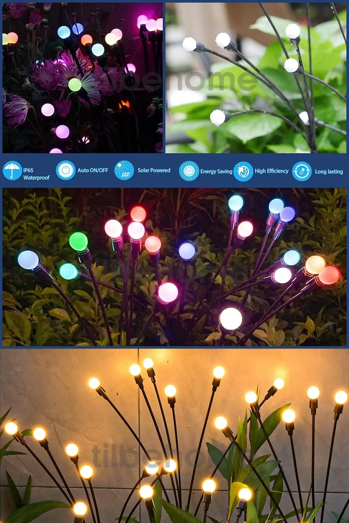• Renkler: Renkli ışığı ile rengarenk bahçe ışıkları