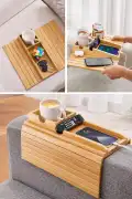Koltuk Kenarı Bambu Katlanabilir Yan Sehpa Amerikan Servisi Kanepe Kenarı Portatif Koltuk Tepsisi