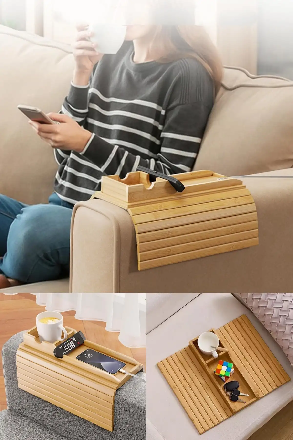 • Bambu Koltuk Kolçak Sehpası – Pratik & Şık Çözüm