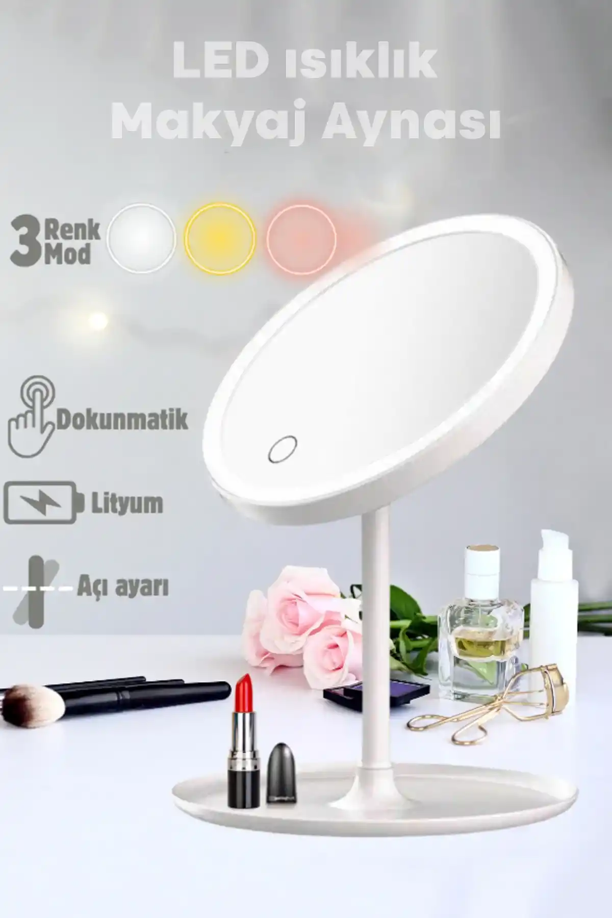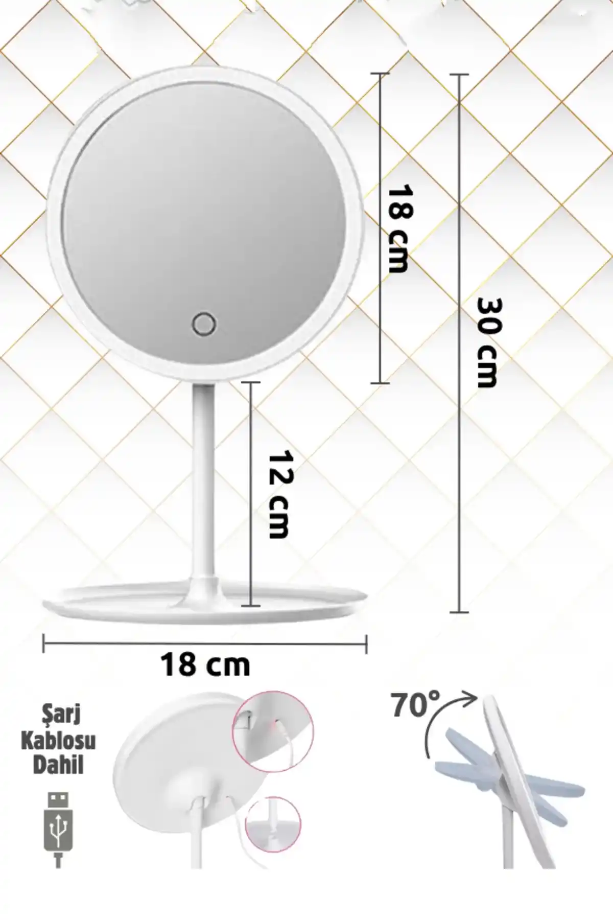 • Paket İçeriği: 1 Adet LED Işıklı Dokunmatik USB Masaüstü Yuvarlak Makyaj Aynası Bulunmaktadır.