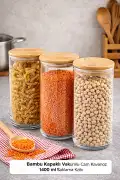 • Paket İçeriği: 6 Adet 1400 ml Bambu Kapaklı Borosilikat Cam Kavanoz Bulunmaktadır.